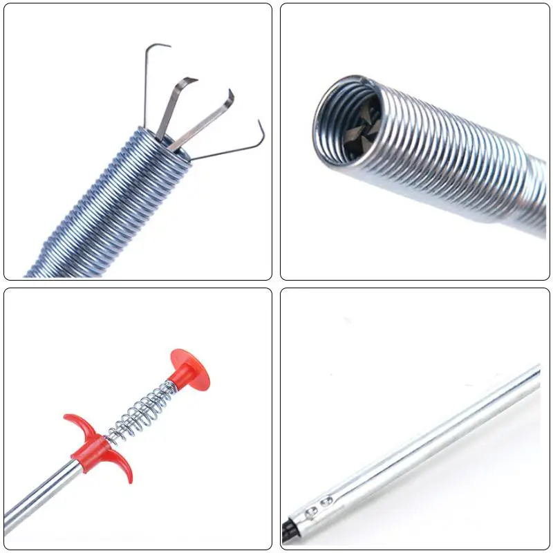 1. Широко используется для очистки ванных комнат, кухонь, раковин, ванн и отбивающихся труб, канализационных труб, канализационных труб и других часто засоренных зон. 2. Многозубчатые дренажные змеи эффективно захватывают волосы, продукты питания и другие препятствия. 3. Легко поймать Твердые препятствия и зацепить волосы и мусор. 4. Длина 60 см, достаточно для вставки глубокой трубки, удерживания кольца, легко Вытяните вилку.