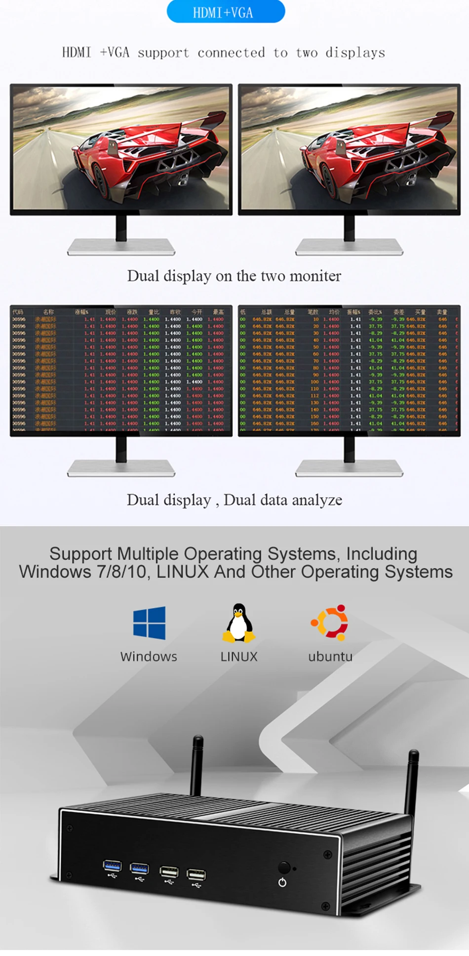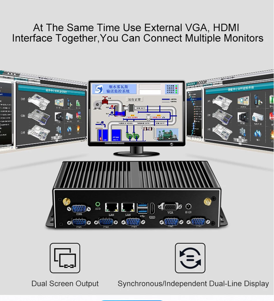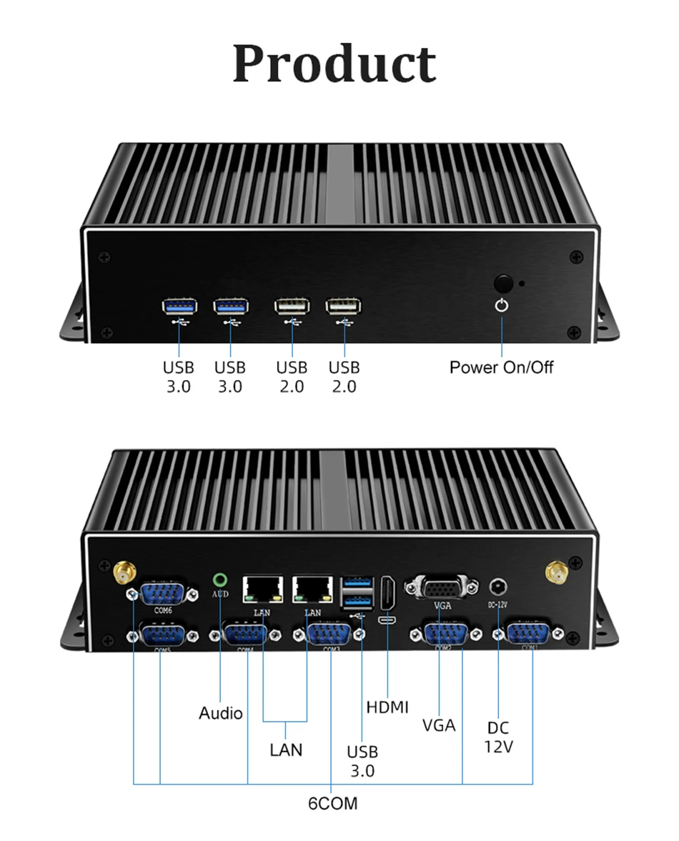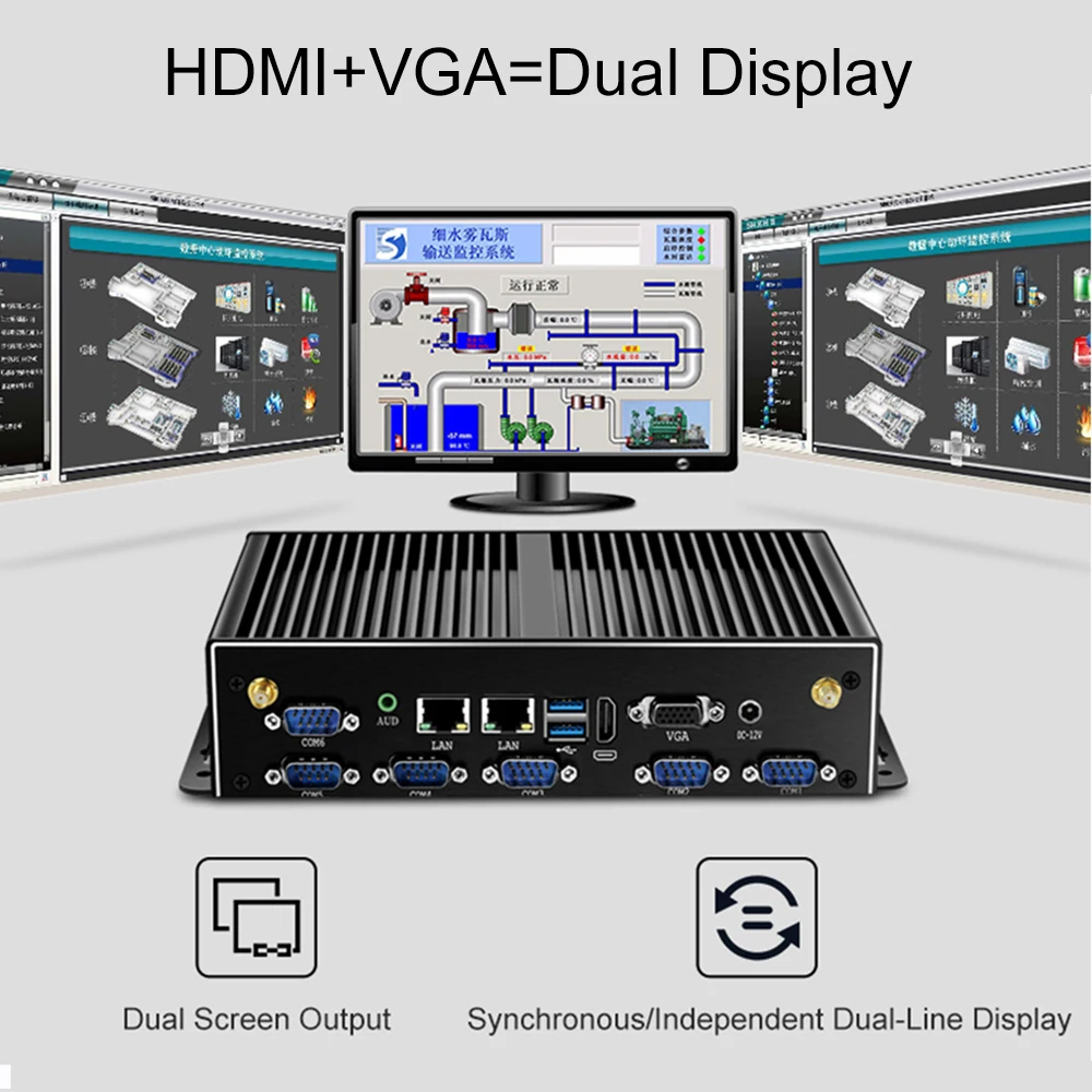 Мини-ПК XCY Intel Core i7 i5 4200U i3 2 * LAN 6 * RS232 4 * USB HDMI VGA Wi-Fi 3G 4G Встроенный промышленный микрокомпьютер Windows Linux