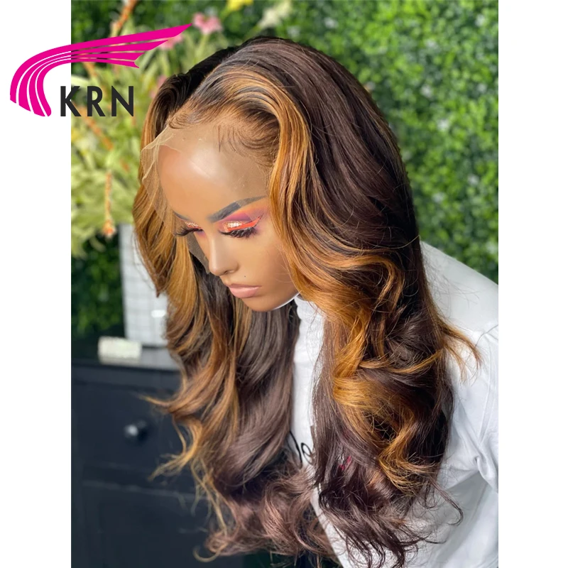 KRN бразильский кудрявый парик коричневого цвета 13x4 парики из чел...