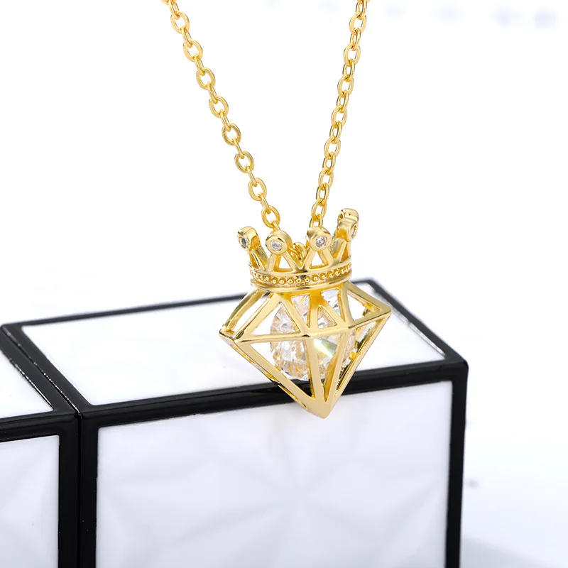 Женское колье с кулоном в виде короны, ожерелье с кубическим цирконием, ювелирное изделие в подарок на Новый год, 2021