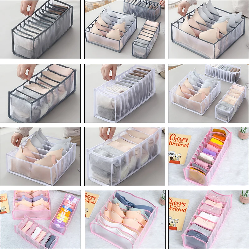 Органайзер для бюстгальтеров, 7 ячеек, органайзер для общежития, шкафа для носков, домашний разделенный ящик для хранения нижнего белья, сетчатый складной органайзер в клетку