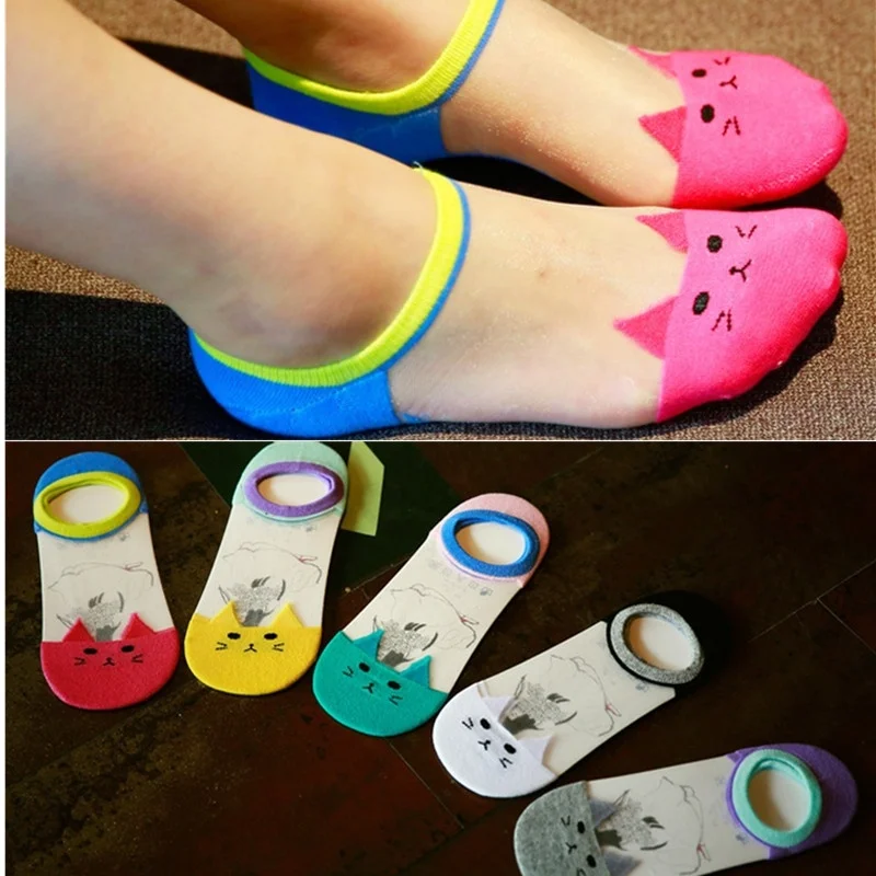 Модные женские носки, креативные милые носки-невидимки с котом, женские шелковые носки с кристаллами, оптовая продажа, один размер