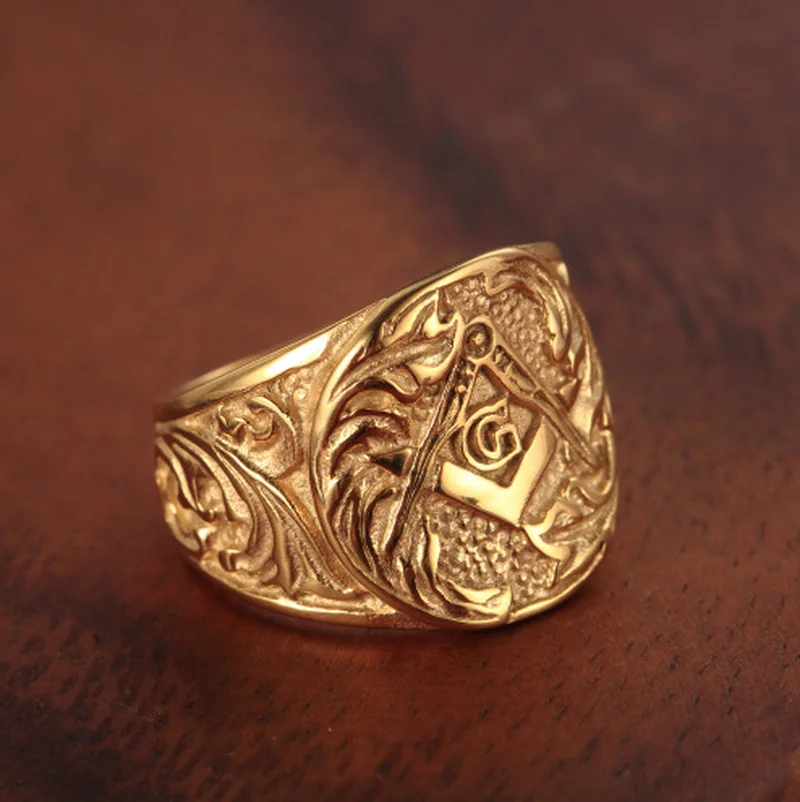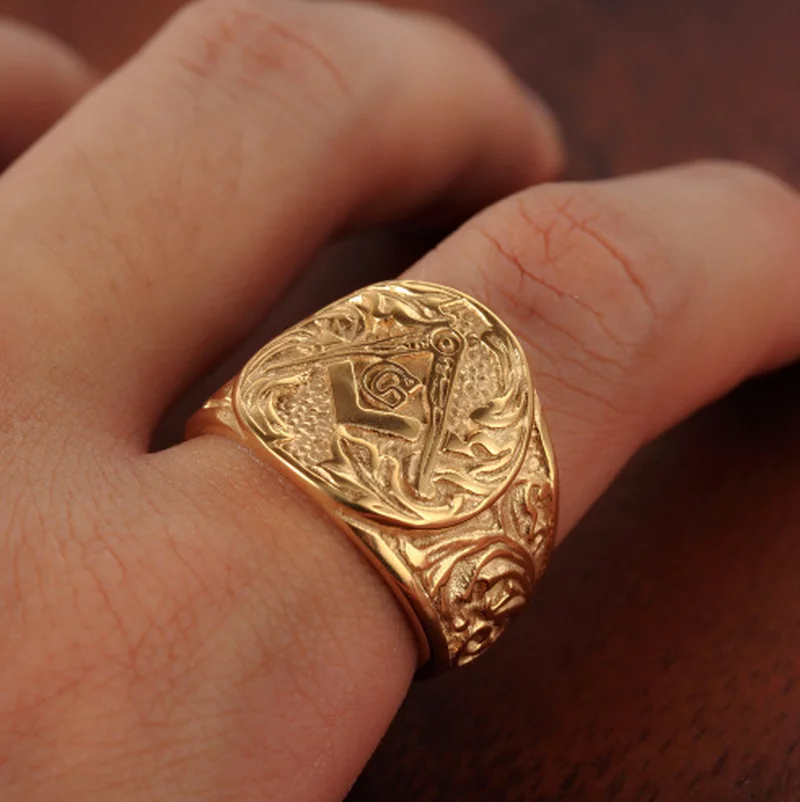 Мужское кольцо в стиле панк, классическое, золотое, масонское, для вечевечерние
