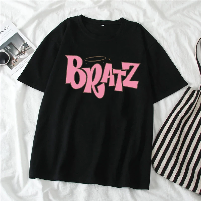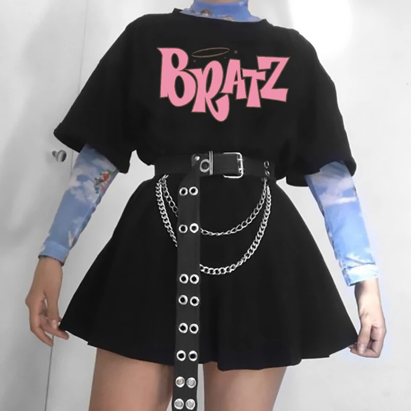 Женские винтажные футболки в стиле Харадзюку, черные футболки с принтом, 100% хлопок, уличная одежда в Корейском стиле, Прямая поставка