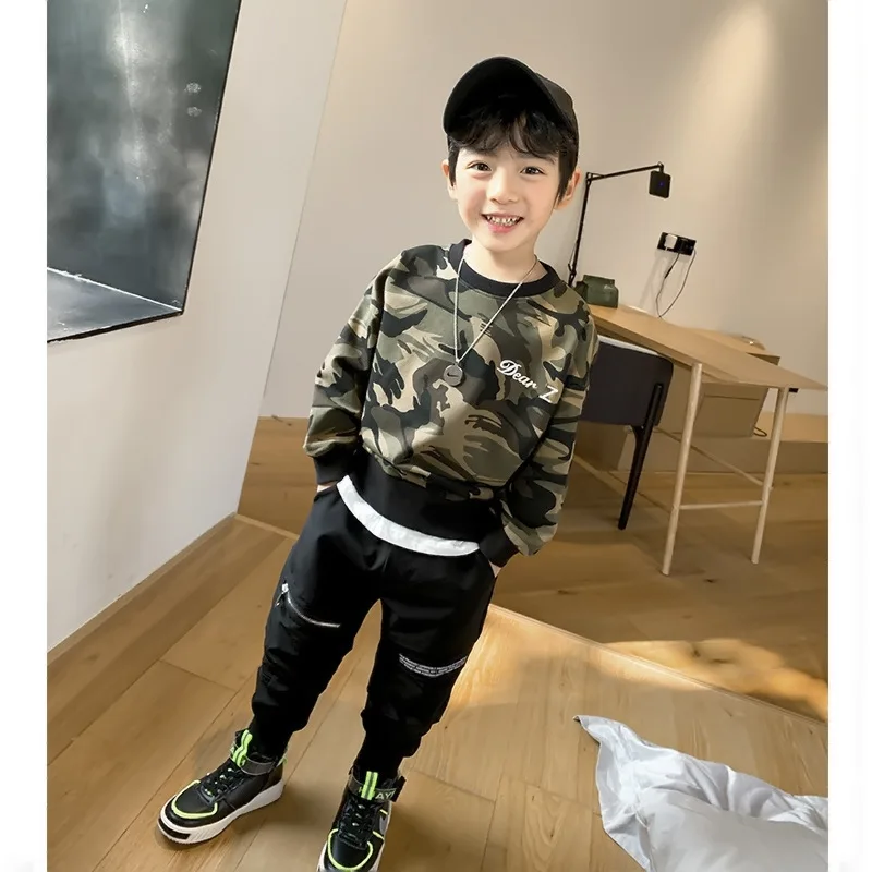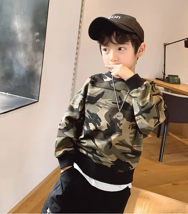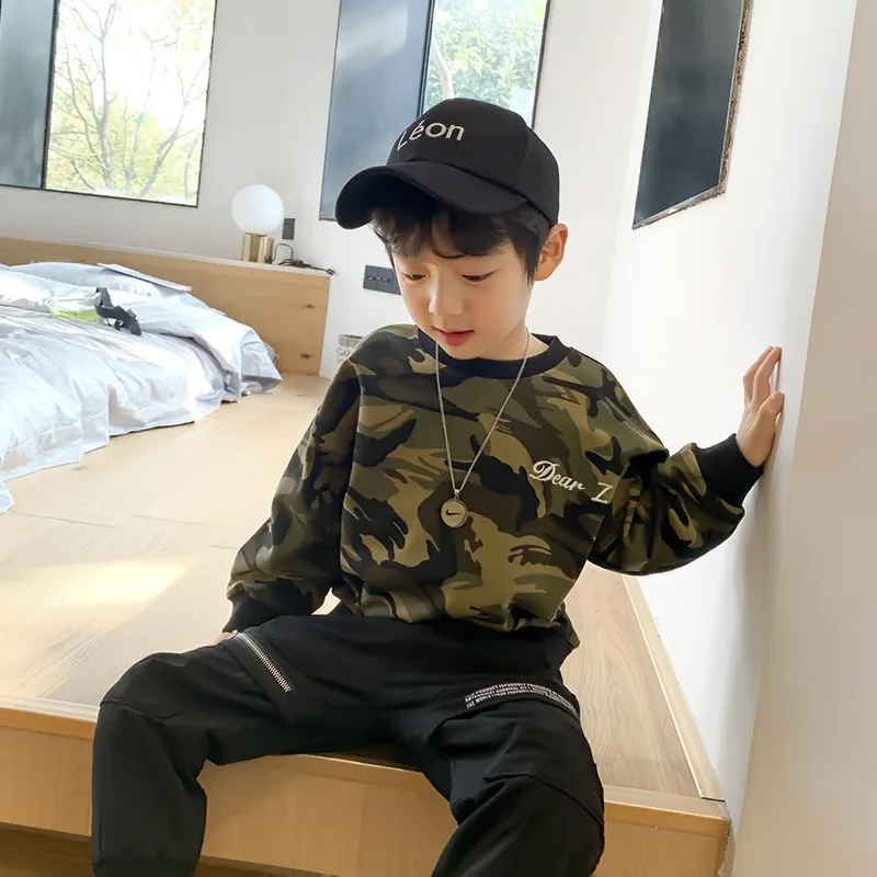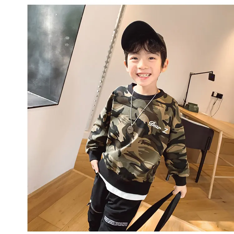 Коллекция 2021 года, весенне-осенние толстовки для мальчиков, камуфляжные Детские футболки Детская верхняя одежда с длинными рукавами футболка для подростков возрастом от 3 до 12 лет