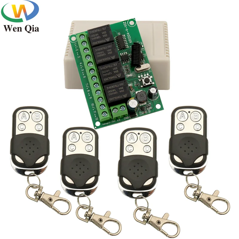 Универсальный беспроводной гаражный пульт дистанционного управления, 433 МГц, 6 В, 24 В, 30 В постоянного тока, 4 канала, 10 А, релейный приемник, передатчик для ворот, мотора, светильник