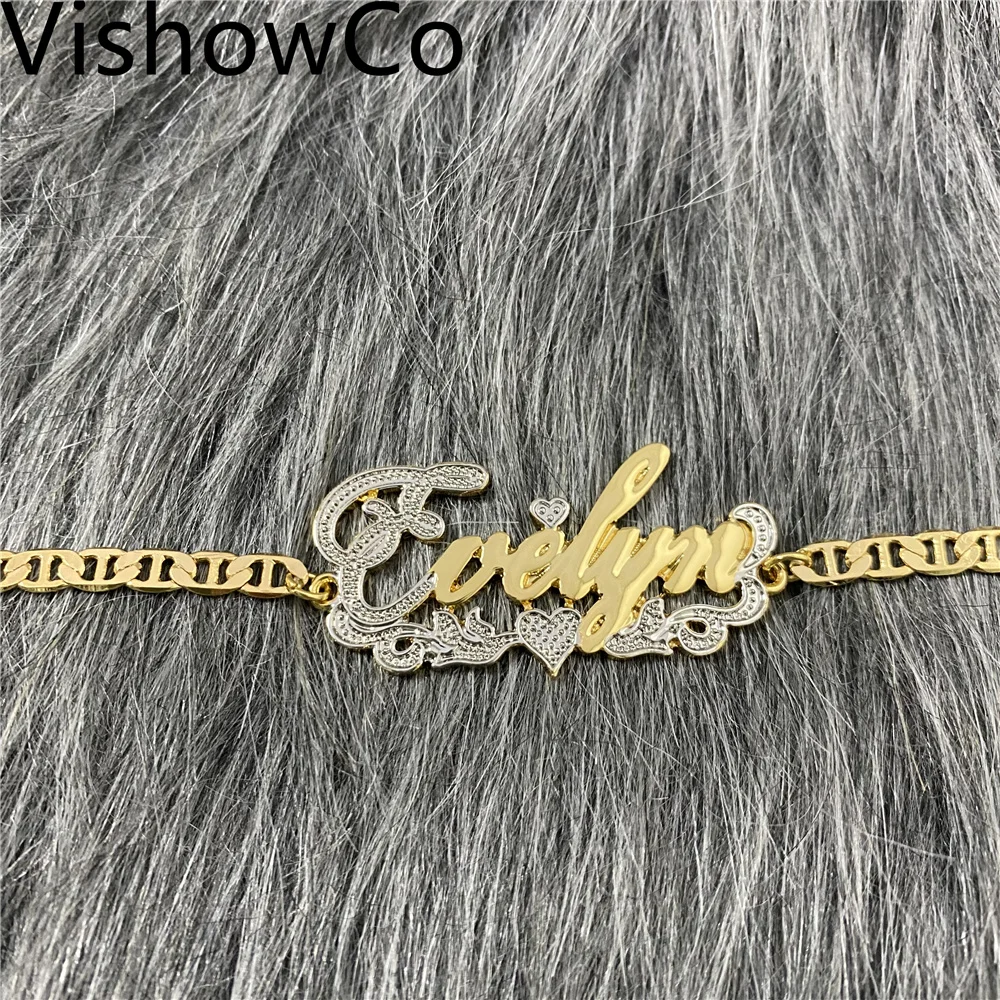 Женский двойной браслет с именем VishowCo, из нержавеющей стали