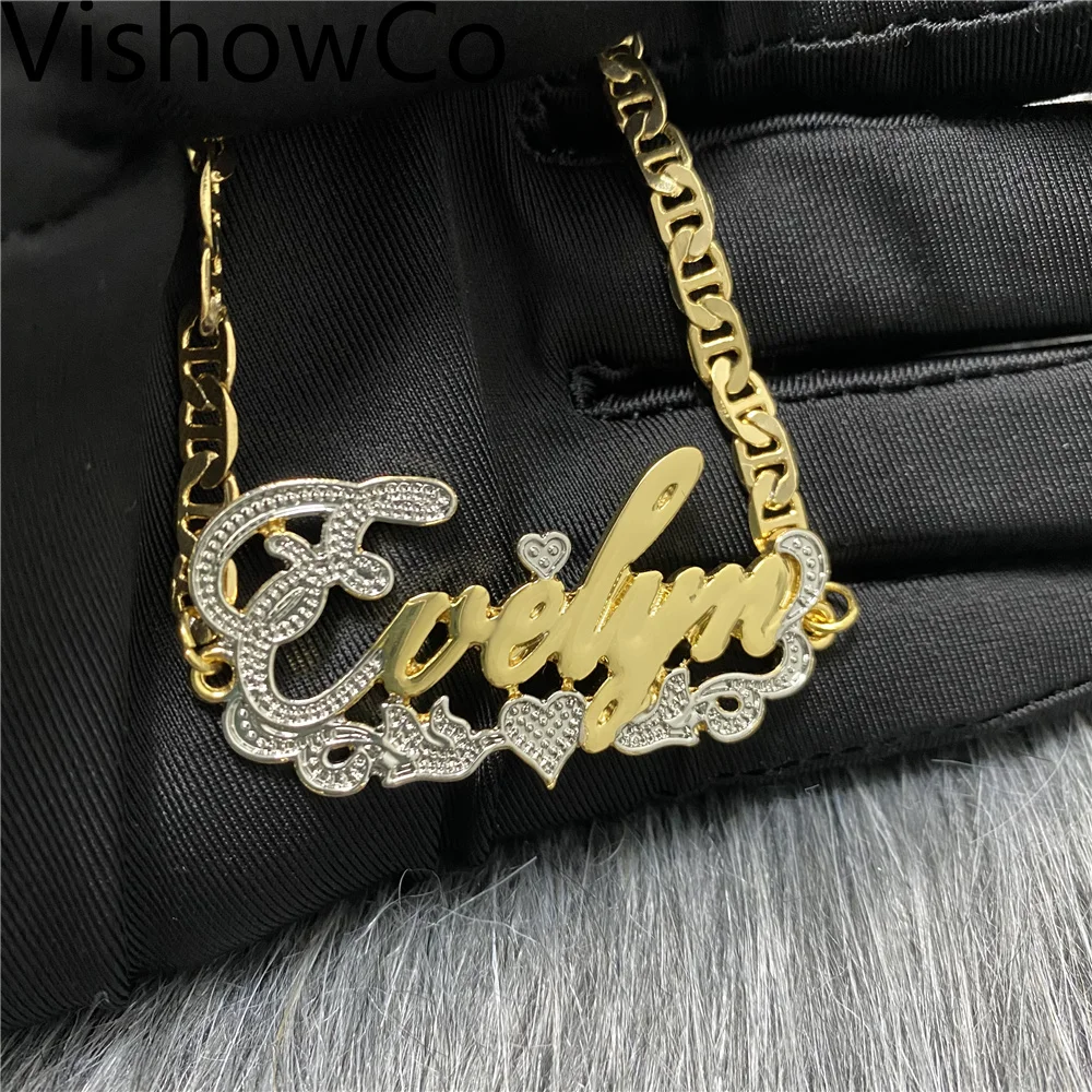 Индивидуальное ожерелье с именем VishowCo, двойное позолоченное оже...