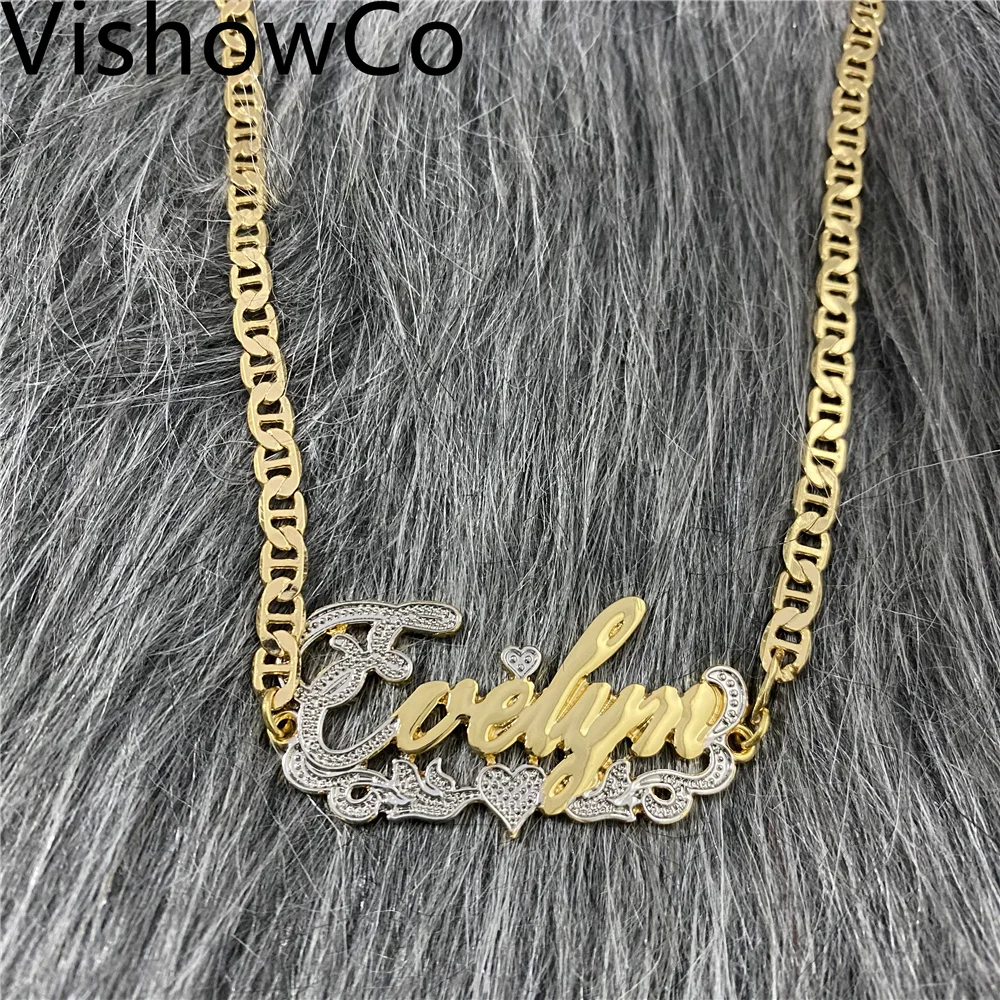 VishowCo циркониевое ожерелье с именем под заказ двойная позолоченн...