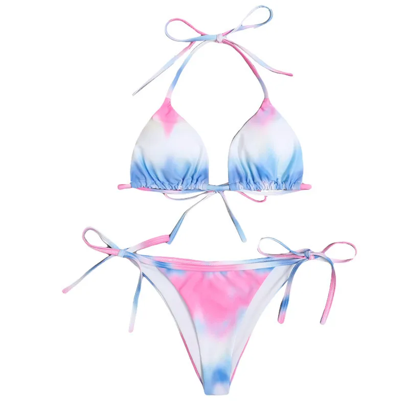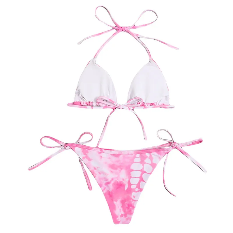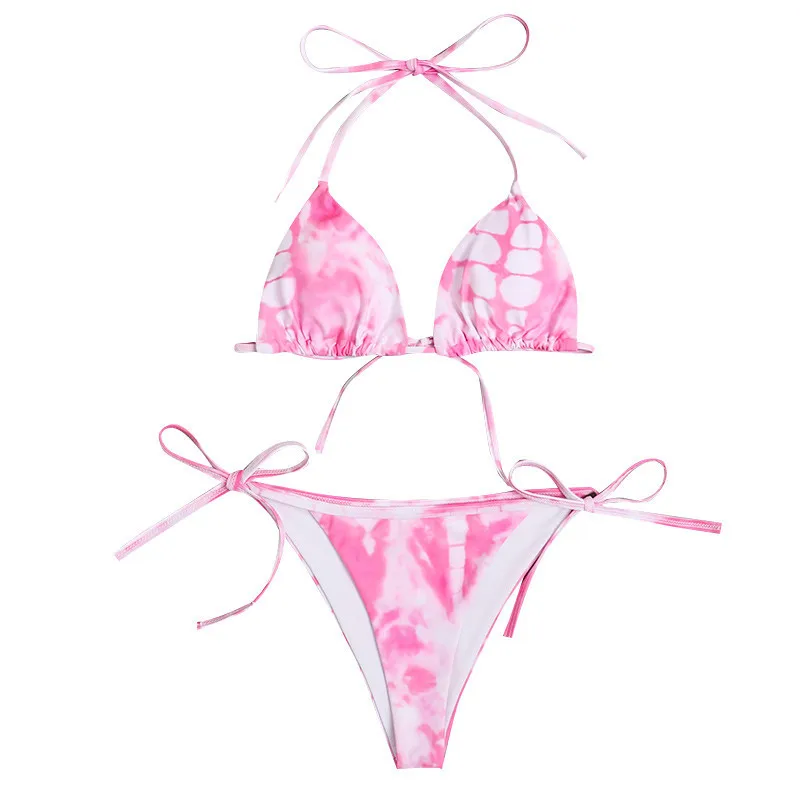 Женский раздельный костюм-бикини, топ на бретелях с принтом тай-дай и бандажные плавки с низкой талией, бикини женский купальник