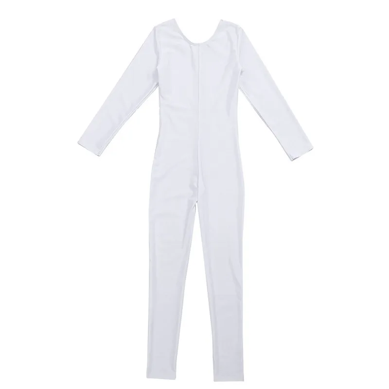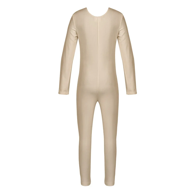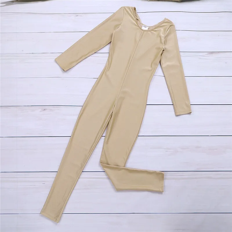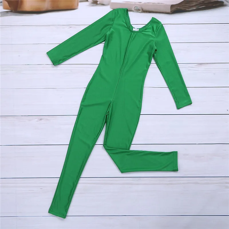 Гимнастический комбинезон для детей, для девочек, с длинными рукавами, вырез лодочкой, однотонный, мягкий, облегающий, для балета, танцев, гимнастики, трико, комбинезон