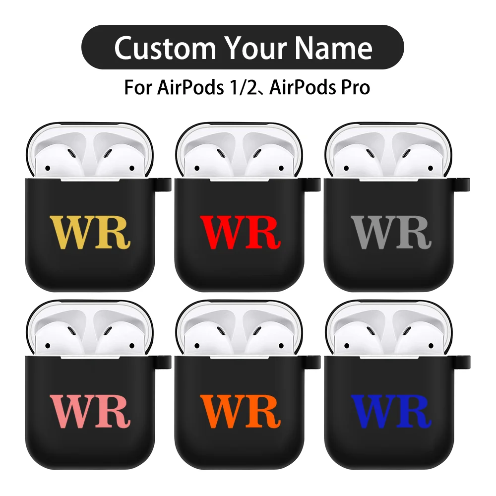 Роскошные буквы DIY Имя под заказ для Airpods 1 2 Pro черный чехол для Air Pods 2 защитный чехол Мягкий силиконовый чехол для Airp
