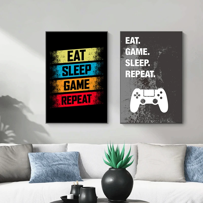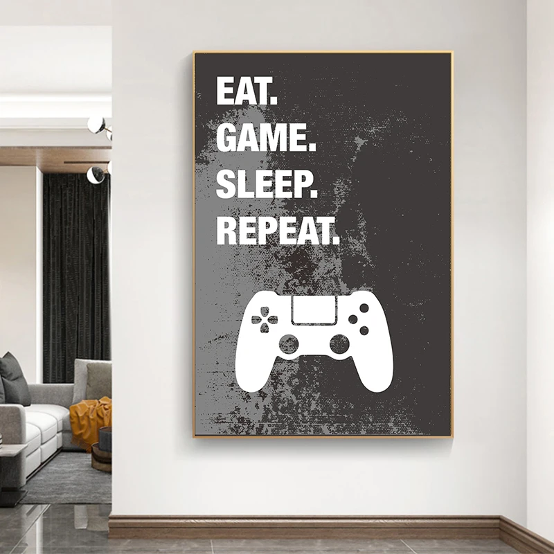 Постер для игр Eat Sleep, Картина на холсте для игроков, Декоративная Настенная картина для комнаты мальчиков, игровая комната