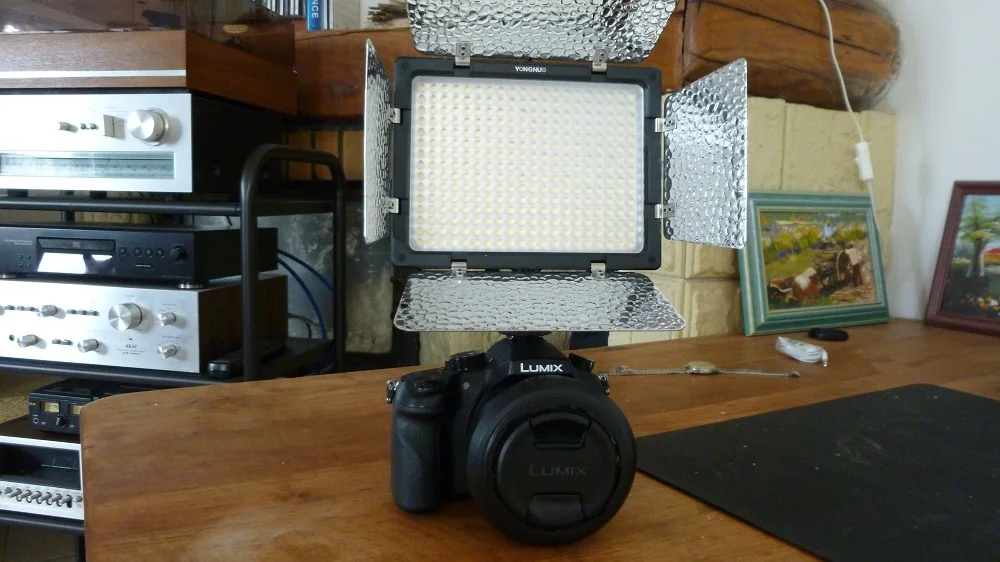 3.YN300 III состоит из 150 светодиодный ламповых бусин с цветовой температурой 3200k и еще 150 светодиодный ламповых бусин с цветовой температурой 5500k, которые являются высококачественными ламповыми бусинами сверхбольших светящихся чипов, С более высокой яркостью в одинаковом энергопотреблении. Цветовая температура может быть скорректирована с 3200-5500K по мере необходимости, с более практичным использованием.