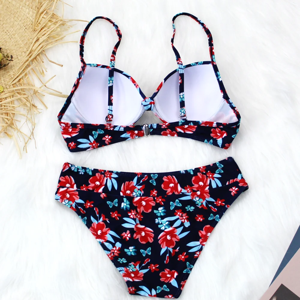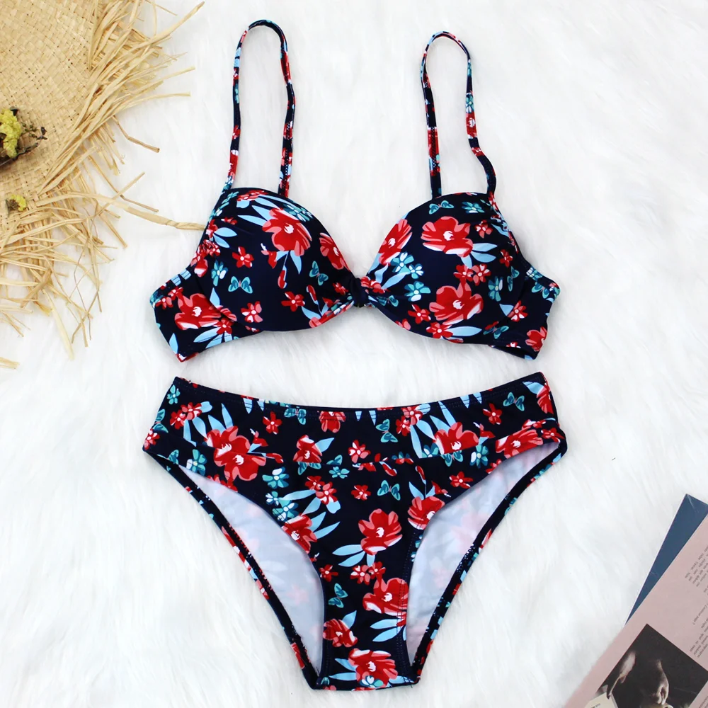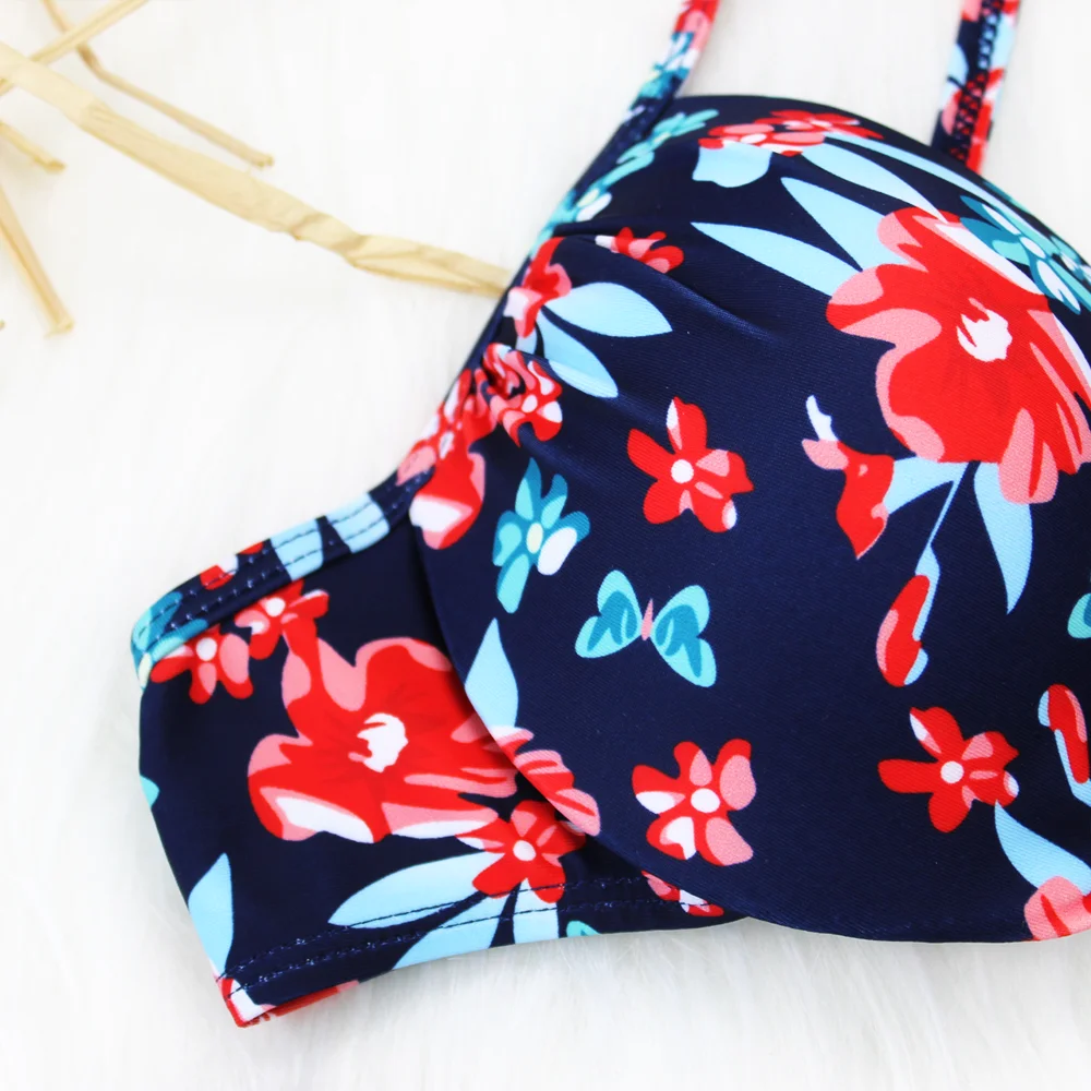 Женский купальник 2021 бикини пуш-ап Цветочный купальник Женские сексуальные Купальные костюмы Женская Регулируемая летняя пляжная одежда на бретелях