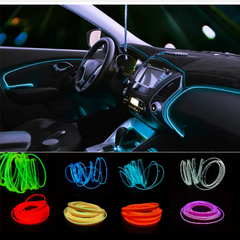 Внутреннее освещение EL, 1 м, 2 м, 3 м, 5 м, провод, трубка, гибкая неоновая полоса в автомобильном освещении, 12 В, светодиодные автомобильные аксессуары