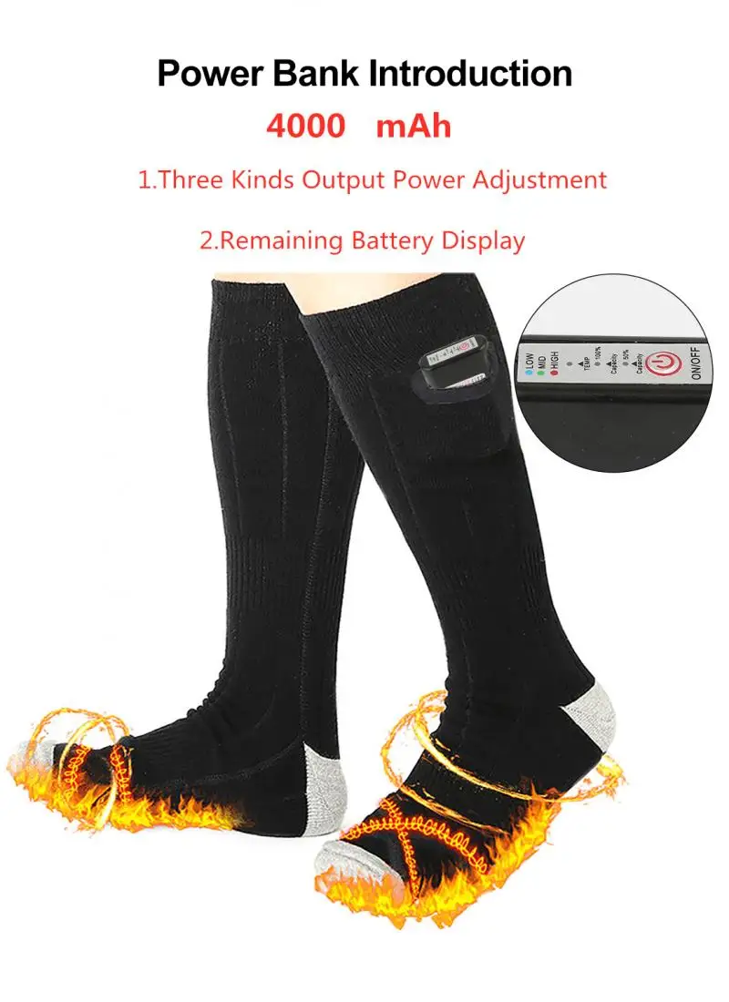 Теплые носки с электрическим подогревом носки с перезаряжаемой батареей зимние теплые носки 4000 мАч для зимних прогулок на лыжах спортивный обогреватель