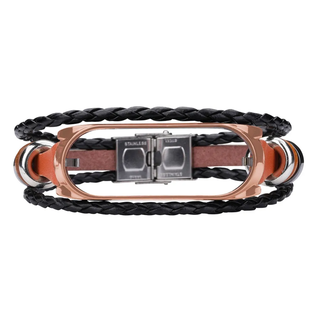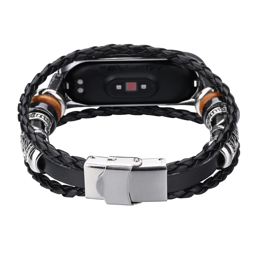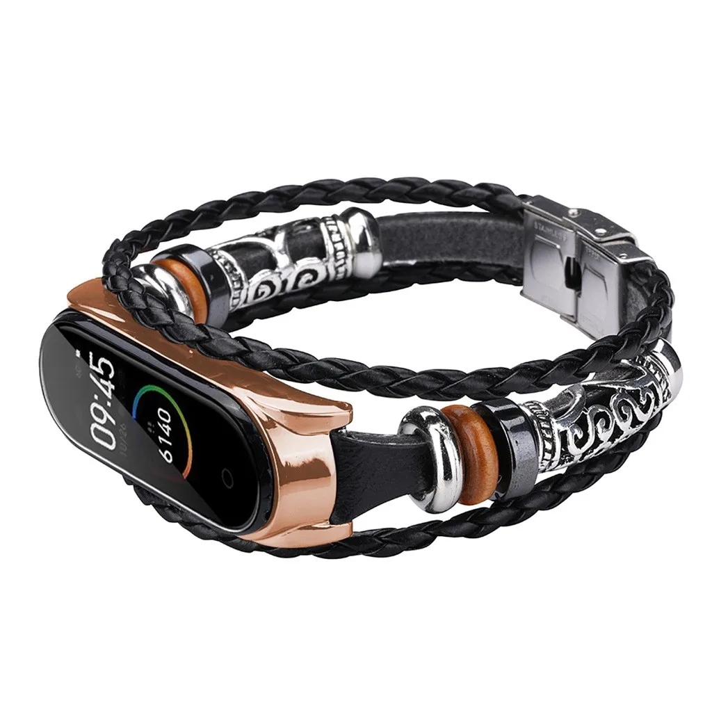 Модный кожаный ремешок для браслета с бусинами, Плетеный сменный ремешок для часов Xiaomi Mi Band 4