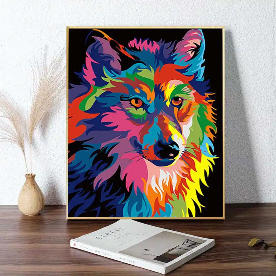 Картина AZQSD по номерам кошка тигр лев Волк Олень Леопард орангутанг расписанная вручную Акриловая картина маслом для домашнего декора стен