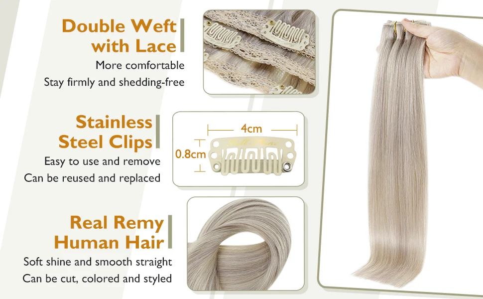 8. 【Новый дизайн набора 】полная команда блеска сделали только 3 штуки для 50 г зажим для шнурка в наращивание волос. Мы знаем, что вам не нравятся маленькие кусочки. Так что 1x8 дюймов волосы уток с 3 клипсами; 2x10,5 дюймов Волосы Уток кусок с 4 клипсами полностью! Хотя вы хотите 150 граммов, всего 9 штук! Не нужно беспокоиться о том, где я должен наносить кусочки, никогда!
