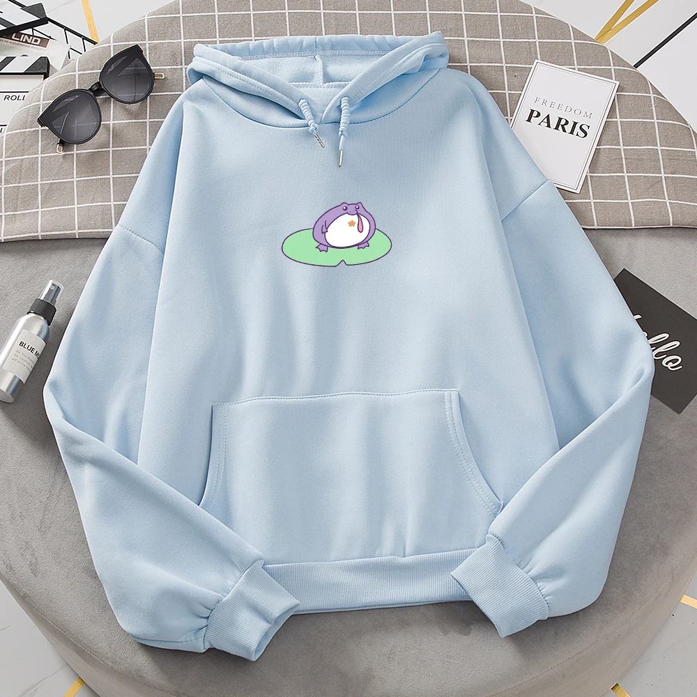 Женский Толстовка с капюшоном Lotus Leaf, теплый пуловер большого размера в стиле Харадзюку, с рисунком лягушки