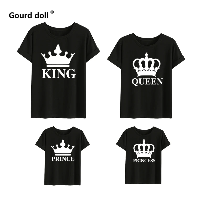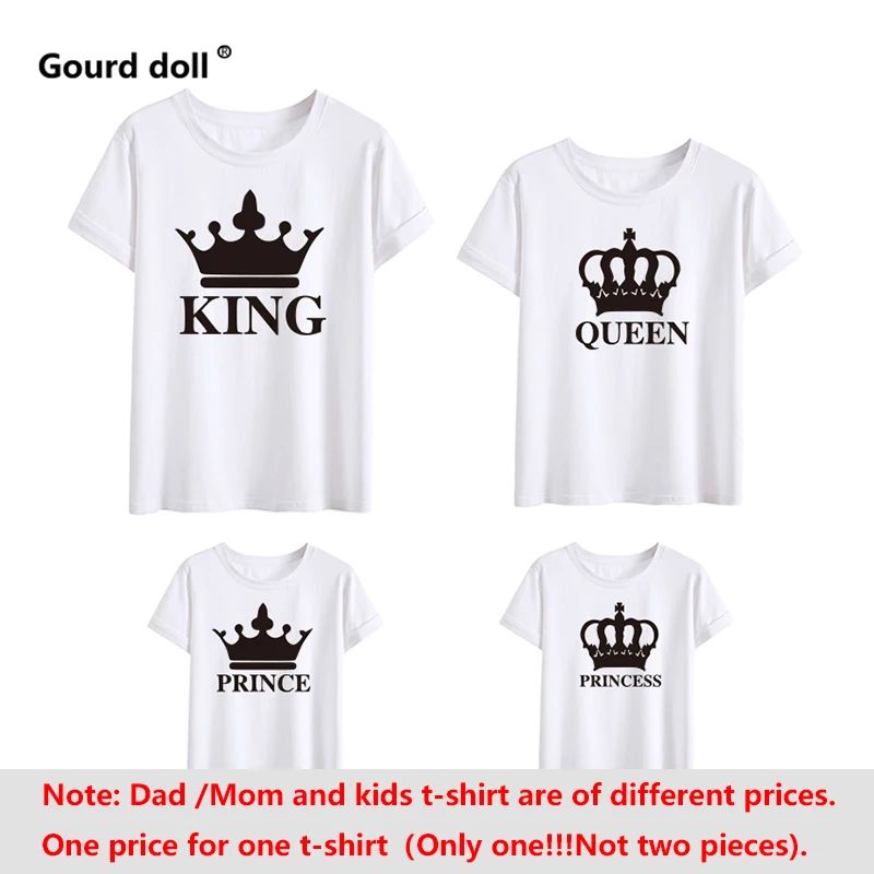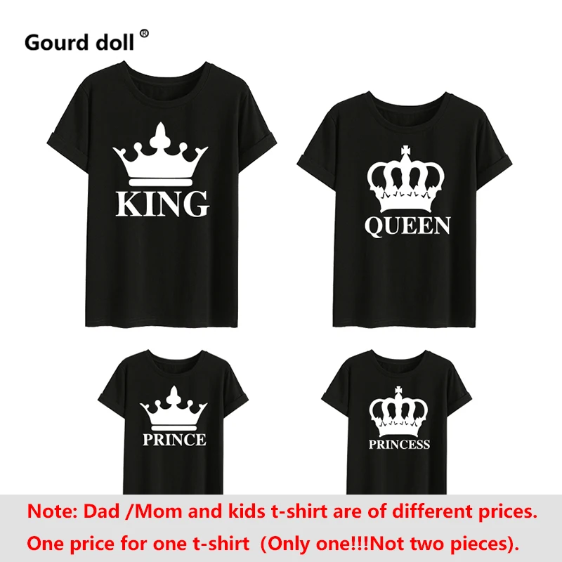 Одинаковая одежда для семьи KING and QUEEN, принцессы и принцы, хлопковая футболка, одежда для отца, мамы, дочки, сына, малышей, топы