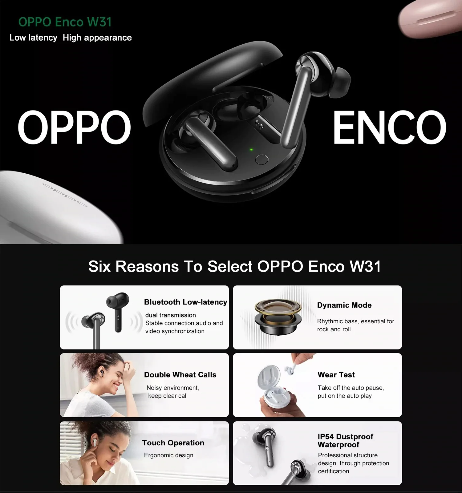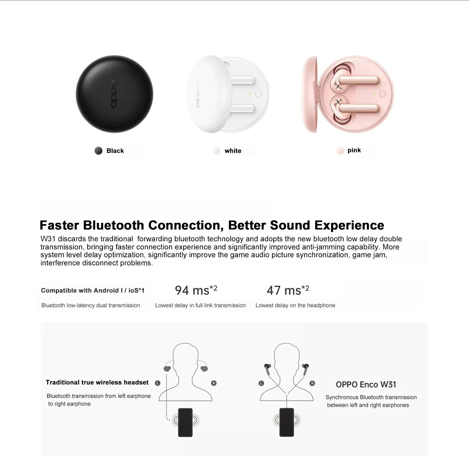 Наушники OPPO Enco W31, 2020 оригинальные TWS Bluetooth наушники с низкой задержкой, настоящие беспроводные наушники-вкладыши для OPPO Find X2 OPPO Reno Ace