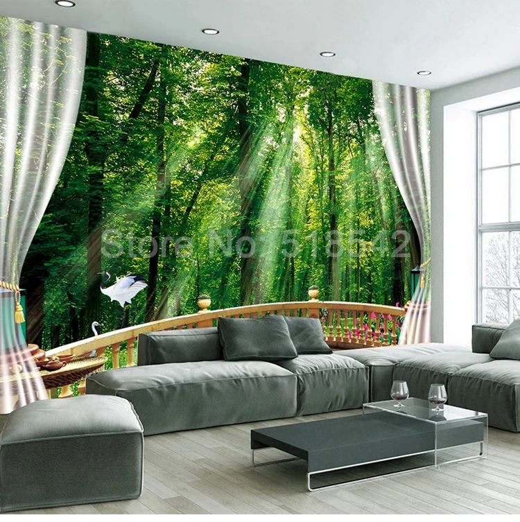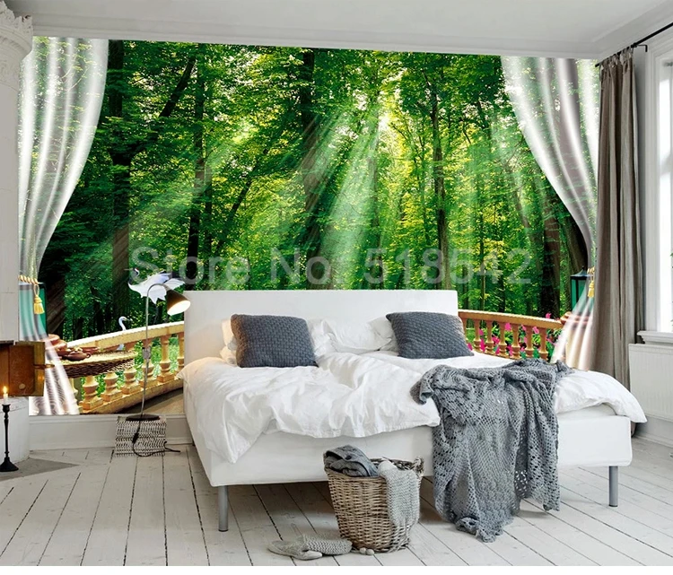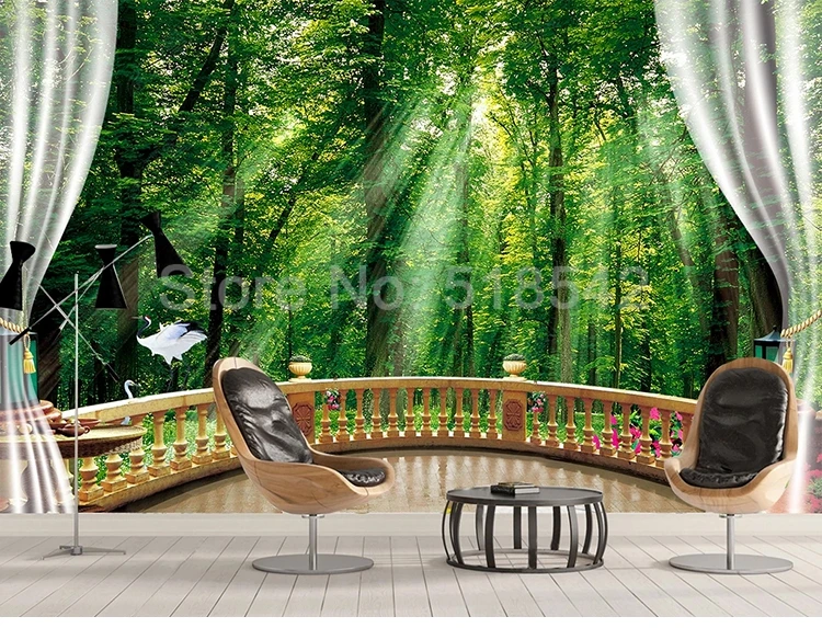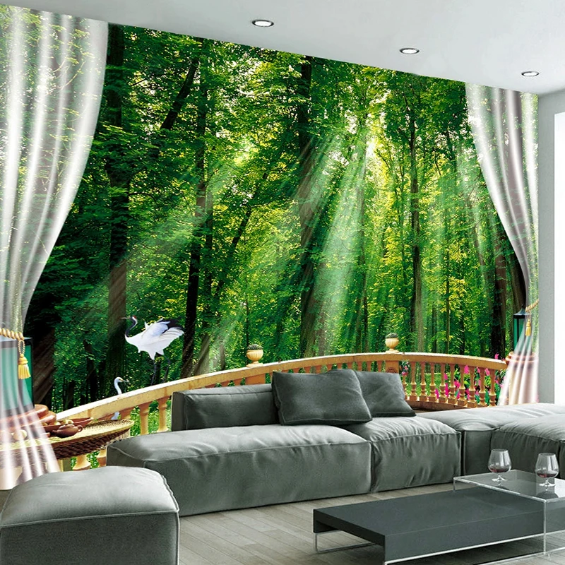 3D настенные росписи на заказ, зеленый лес, солнечный свет, балкон, природный пейзаж, большие настенные фотообои для гостиной, дивана, спальни