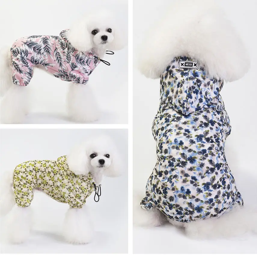 Одежда для собак с перьями, дождевик, одежда для домашних питомцев, дождевик с капюшоном на четыре ножки, весна-лето, модная одежда с мультяшным принтом для мальчиков и девочек