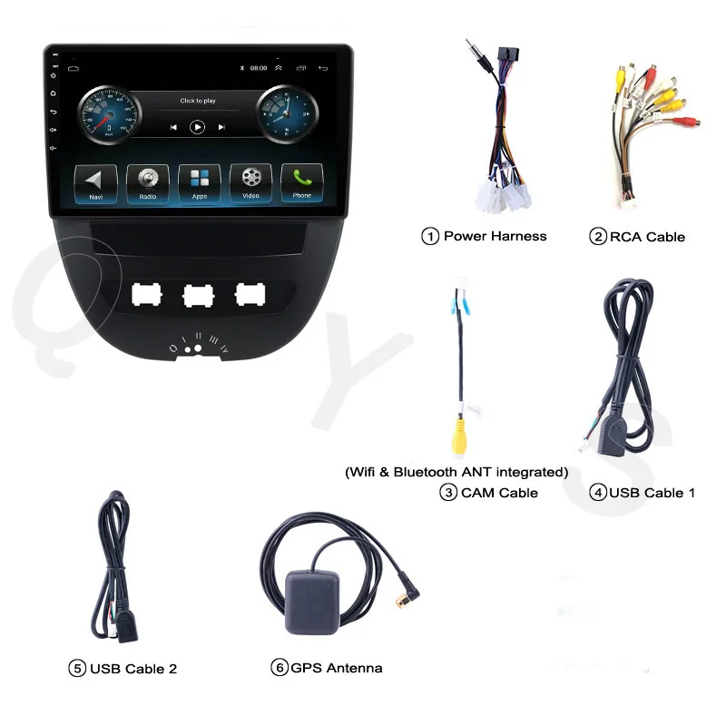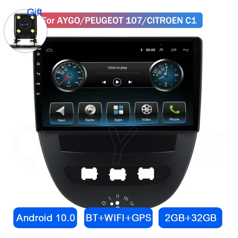 Автомагнитола, мультимедийный плеер, 2 + 32 ГБ, Android 10, для Peugeot 107, Citroen C1, Toyota AYGO, большой экран, GPS-навигация