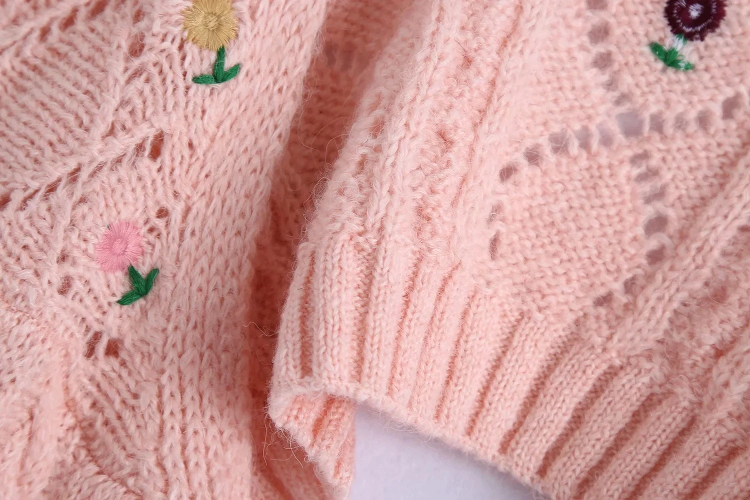 Женский трикотажный кардиган с цветочной вышивкой, винтажный свитер с длинным рукавом + трикотажный топ на бретельках, комплект из 2 предметов, XITIMEAO