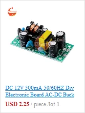 1. Вход Напряжение AC/DC 4,5-24V2. Выходное напряжение: интегрированный регулируемый и фиксированный выход, задняя сторона может выбрать выходное напряжение fiexd3. Регулируемый диапазон: 0,8-17 в, фиксированное напряжение (1,8 V 2,5 V 3,3 V 5V 9V 12V)4. Выходной ток: 3A (макс.), фактический тестовый вход 12 В выход 1.5A5. Эффективность преобразования: 97.5% (макс) (6,5 до 5V 0.7A)6. Частота переключения: 500 кГц7. Выходная волна пульсации: 20 мВ (12 В до 5 В 3 а) 20 м ширина ремешка8. Рабочее напряжение: -40 по Цельсию-85 по Цельсию9. Защита от перенапряжения на выходе: нет10. Статический ток: 0,85 мА11. Скорость регулировки нагрузки: ± 1%12. Регулировка напряжения: ± 0.5%13. Скорость динамического отклика: 5% 200uS14. Защита от короткого замыкания на выходе: Да15. Защита от ввода: нет16. Включение управления: Да17. Тип подключения: пайка18. Вход: пайка19. Выход: пайка/штифт20. Размер отверстия под пайку: 2,54 мм