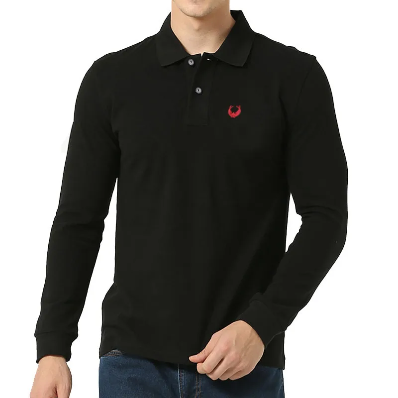 Мужская рубашка-поло, из 100% хлопка, с длинным рукавом, с вышивкой...