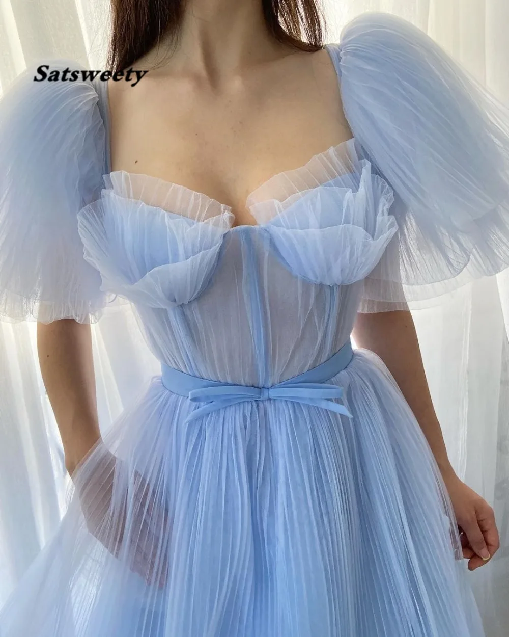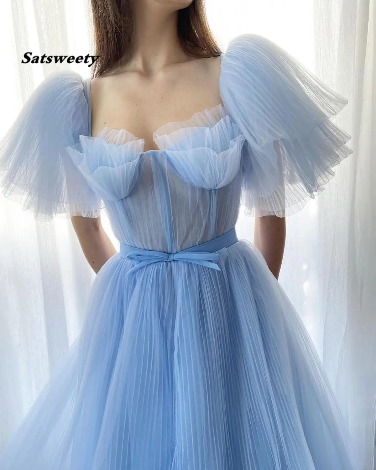 Детское синее плиссированное платье для выпускного вечера, длинное вечернее платье из тюля с разрезом спереди, платье для вечеринки, 2022