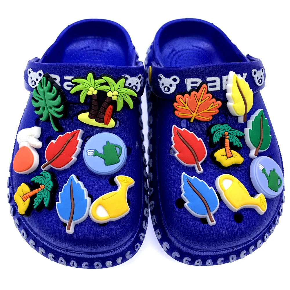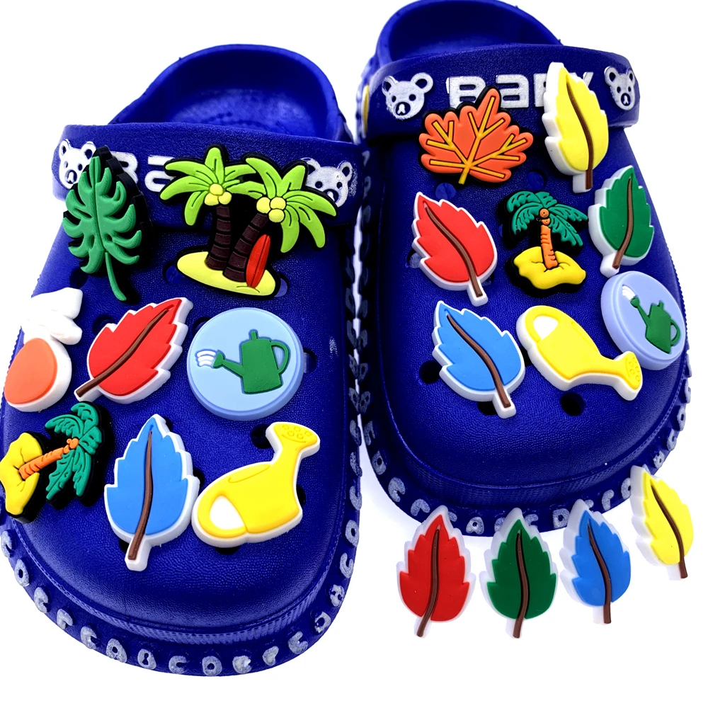 Подвески для обуви из новой серии растений, подарок для детской вечеринки, кокосовое дерево, икона, Кроксы с отверстиями, тапочки, листья, браслеты, аксессуары, 1 шт.