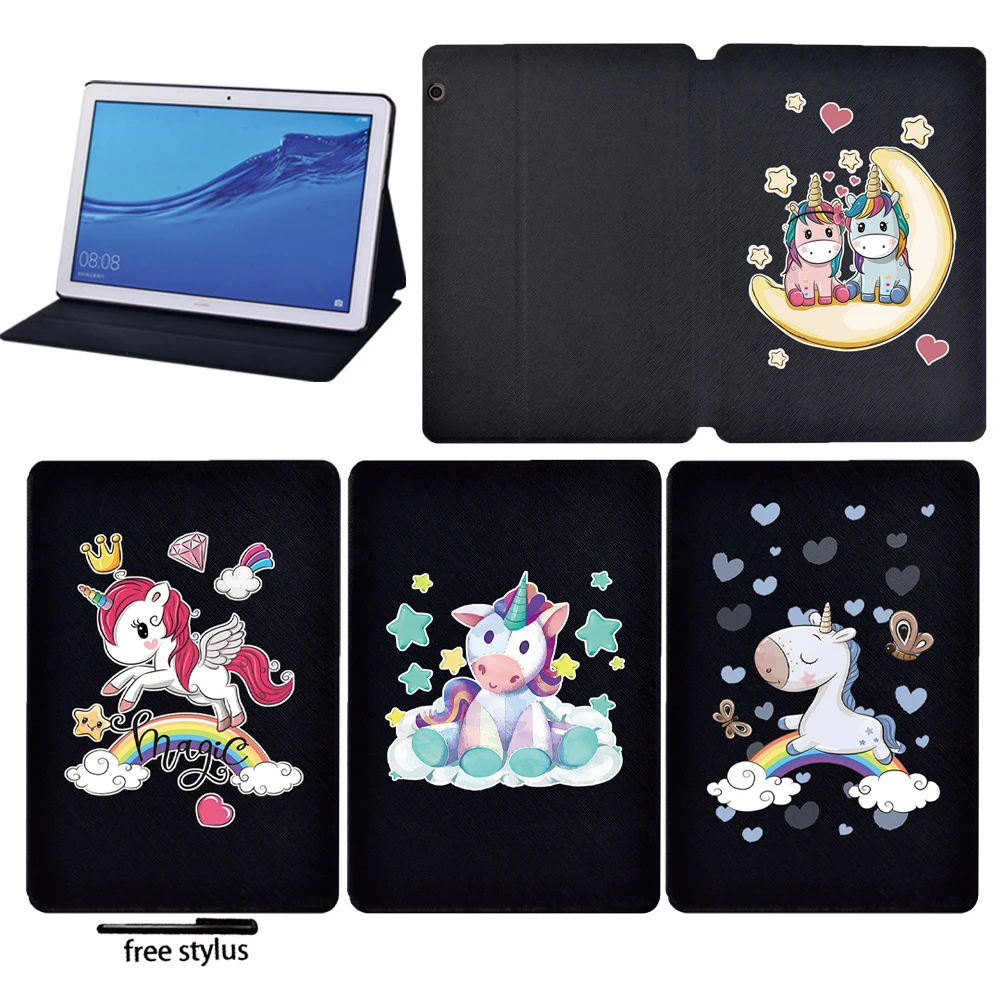 Складной чехол для Huawei MediaPad M5 Lite 8T5 10 10,1 дюймовT3 8,0T3 10 9,6 "кожаный чехол-подставка с рисунком единорога + стилус