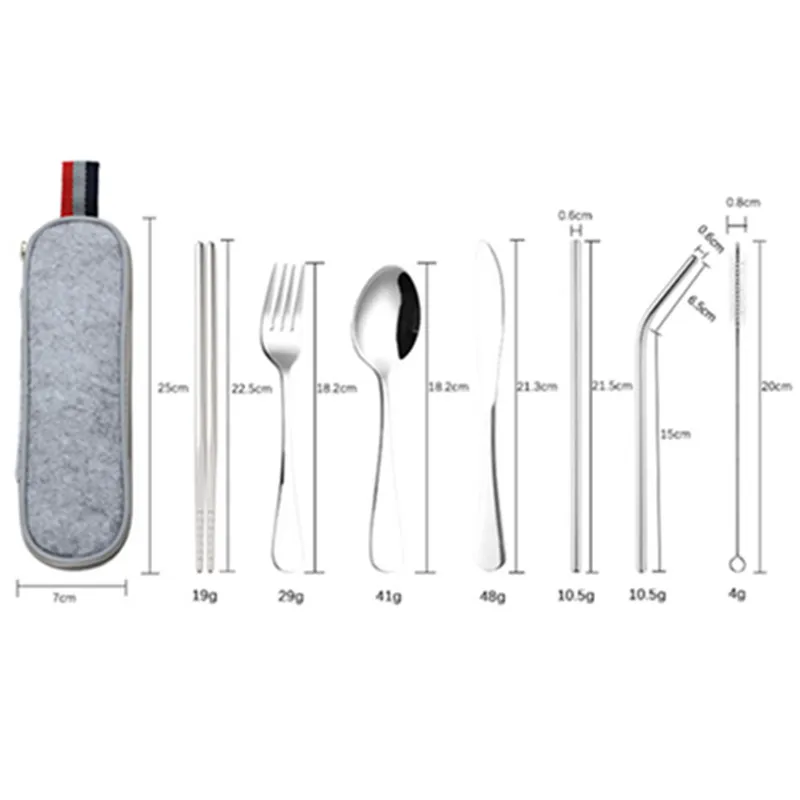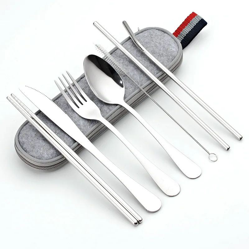 Портативный Нержавеющаясталь столовые принадлежности Комплектная посуда набор располагаться лагерем перемещения столовые приборы, ложка, вилка палочки для еды с трубочкой, Кухня расходные материалы