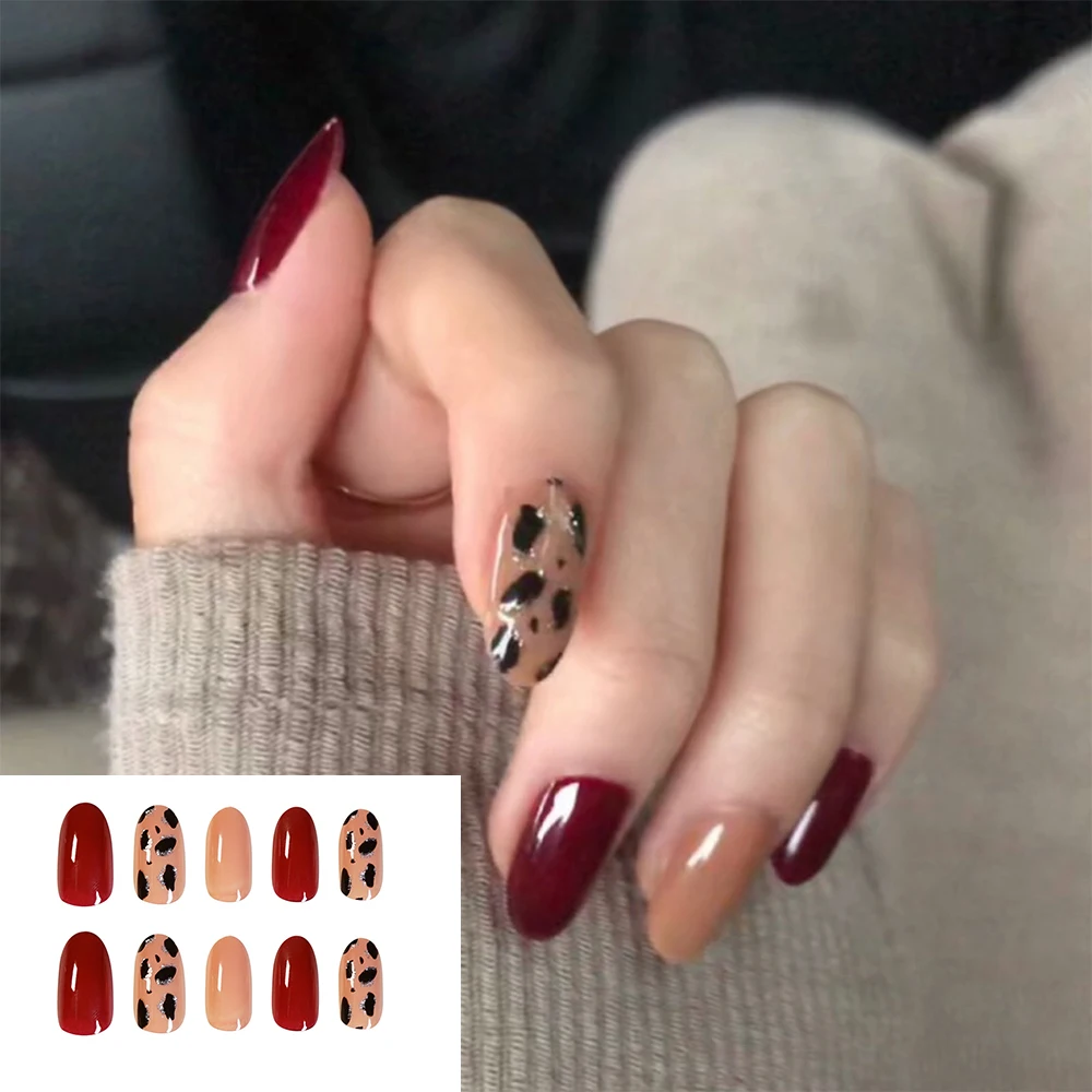 24 шт.кор. леопардовые стилеты накладные ногти съемные балерины нос...