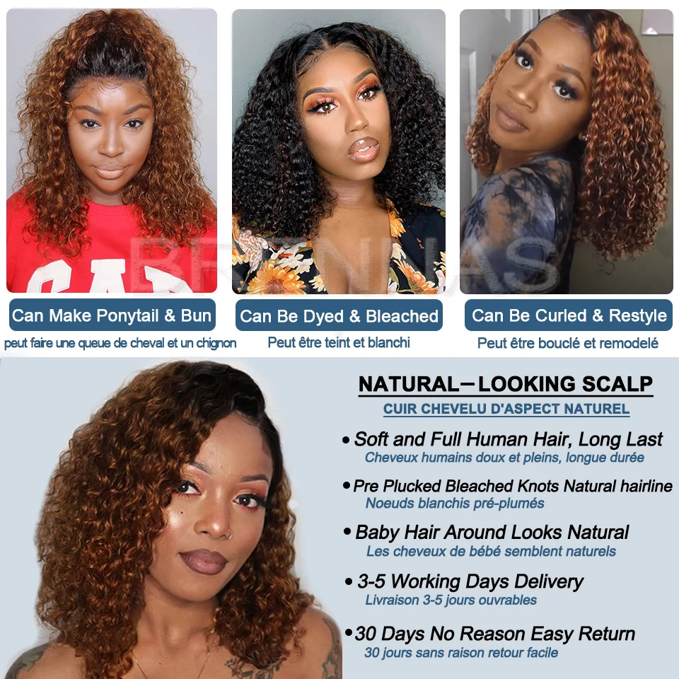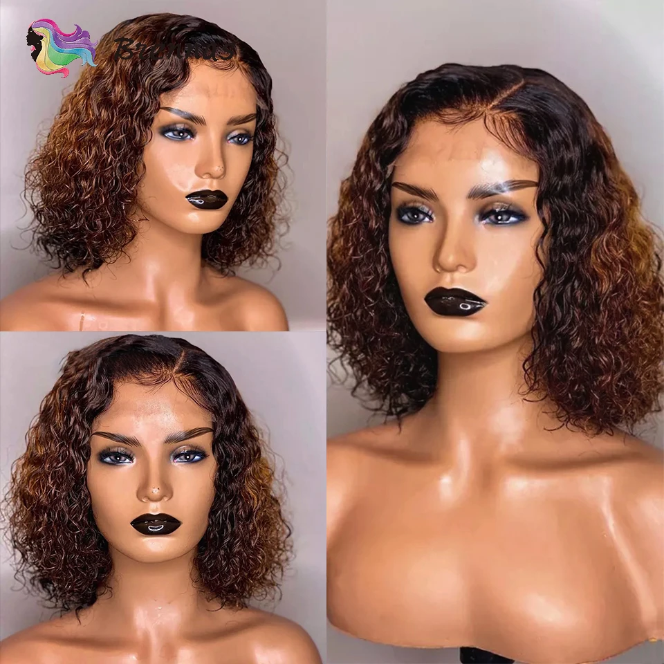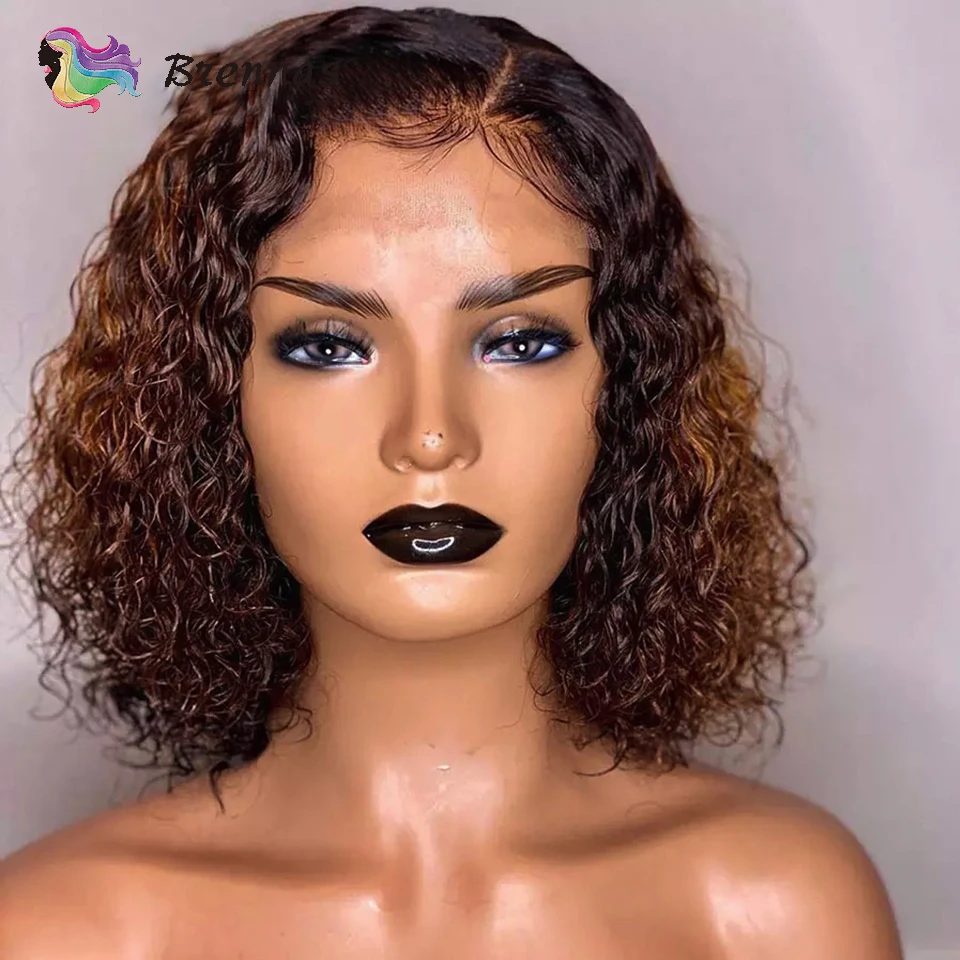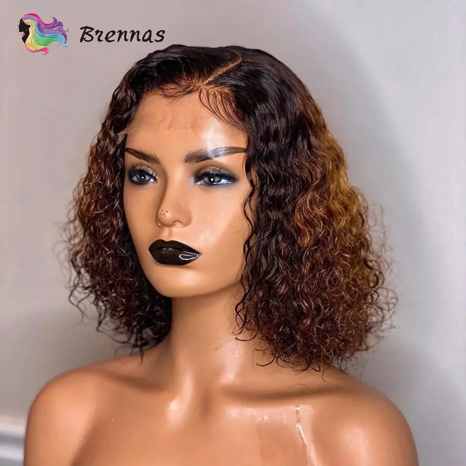Парик с глубокими вьющимися кружевами Омбре 13*4, парик с передними кружевами, бразильские человеческие волосы, парик с короткими вьющимися волосами, парик с передними кружевами для черных женщин, Brennas