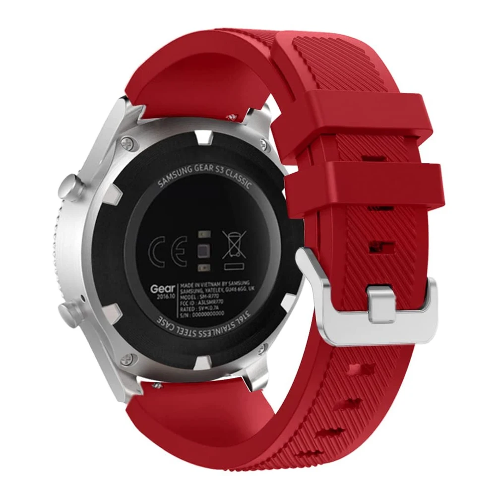 Тип изделия: Ремешки для наручных часов Тип застежки: металлическая пряжка Номер модели: для Samsung Gear S3 состояние: новое без ярлыков Материал ремешка: Силикон Длина ремешка: about140- 251 мм Цвет: белый/черный/армейский зеленый/оранжевый/красный/синий/коричневый стиль 1: спортивная Совместимость: 22 мм: Для Samsung Galaxy Watch 46 мм для Samsung Gear S3 Classic для Samsung Gear S3 Frontier для huawei watch gt ремешок и другие традиционные или умные часы со стандартной шириной «22 мм». 20 мм: для Samsung Galaxy Watch 42 мм для Samsung Gear S2, Gear Sport; Huawei watch 2 и других традиционных или умных часов со стандартной шириной «20 мм». Особенности для Samsung Gear S3 Frontier & Classic позволяют легко персонализировать ваши часы с разными цветами и стилем, удобные и прочные Мягкие силиконовые, срок службы и качество Гарантированно, гарантируем безопасность Ваших часов подходит для 5,51 "-8,46" (140 мм-215 мм) запястья Примечание: оранжевый-это светильник (как на фотографии), не близкий к красному