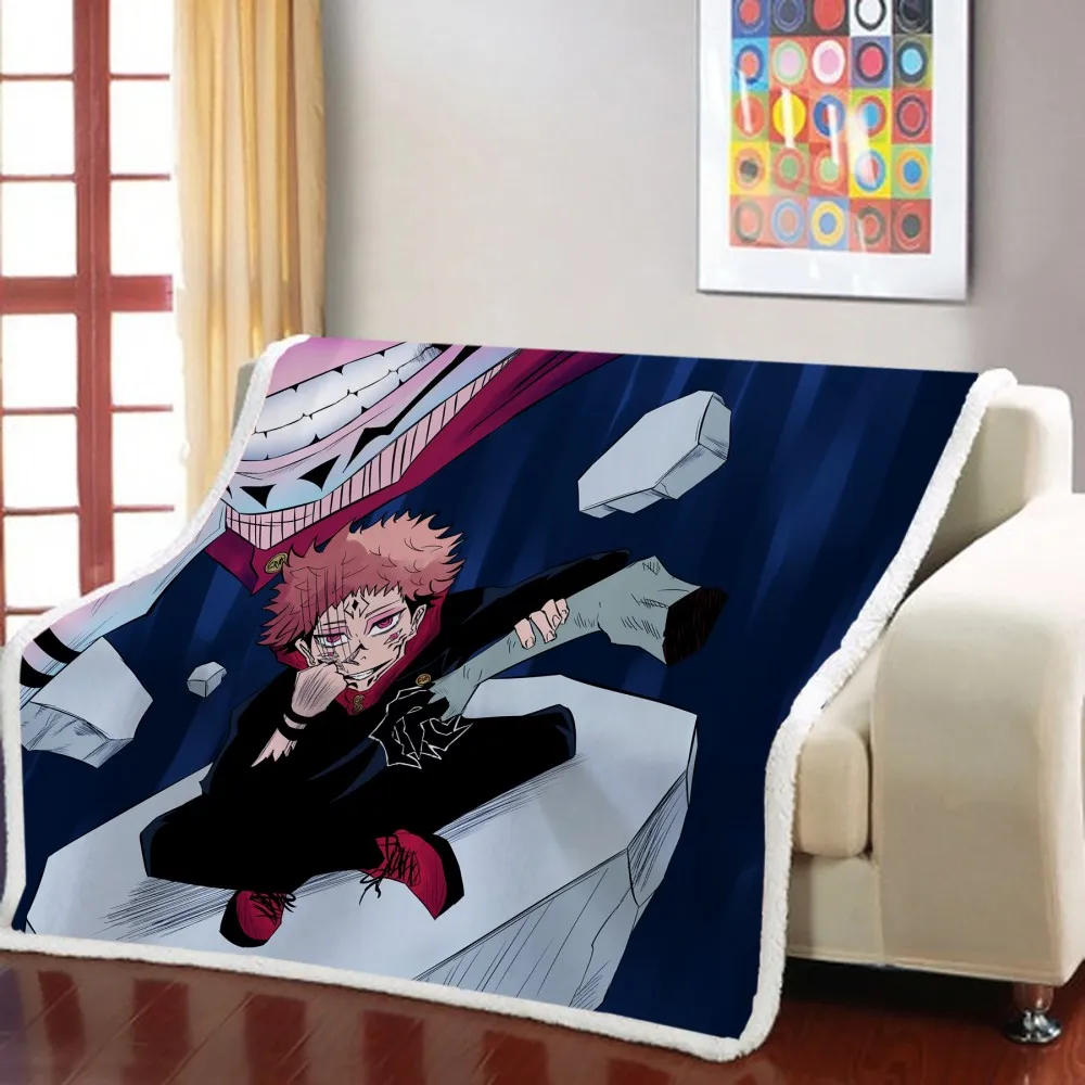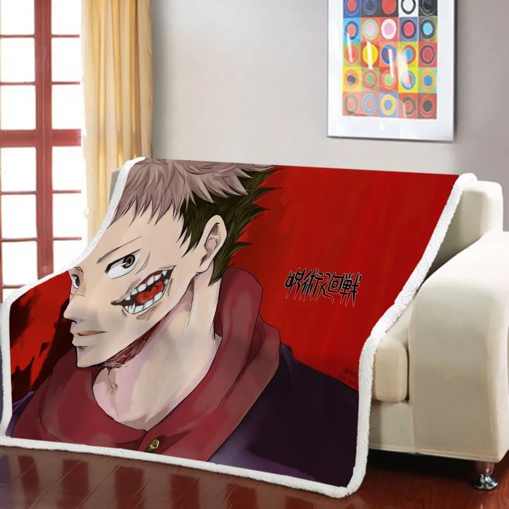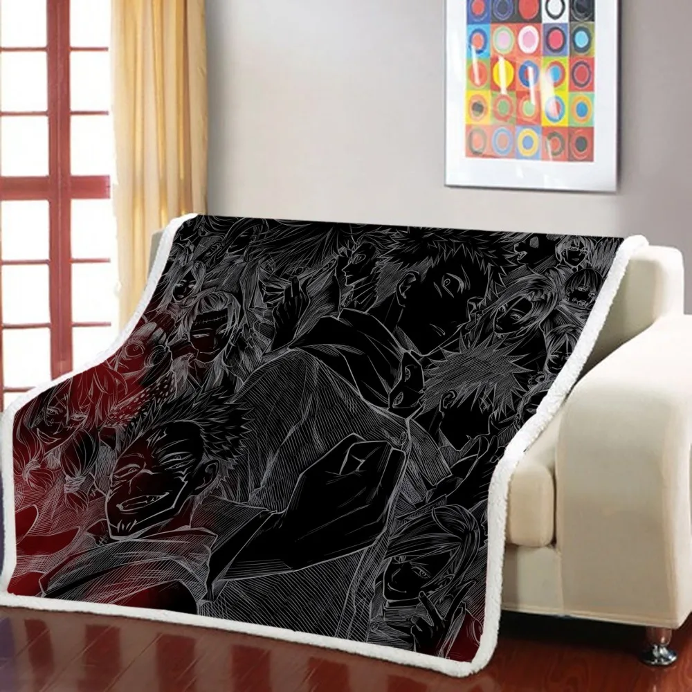 Аниме Jujutsu Kaisen одеяло зимнее теплое шерпа Флисовое одеяло японское мультяшное Подарочное одеяло 150x200 см Покрывало для кровати детское постельное белье для путешествий