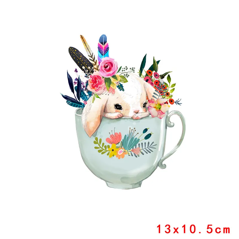 Термотрансферы с изображением симпатичных животных, кроликов для одежды, термотрансферы для одежды