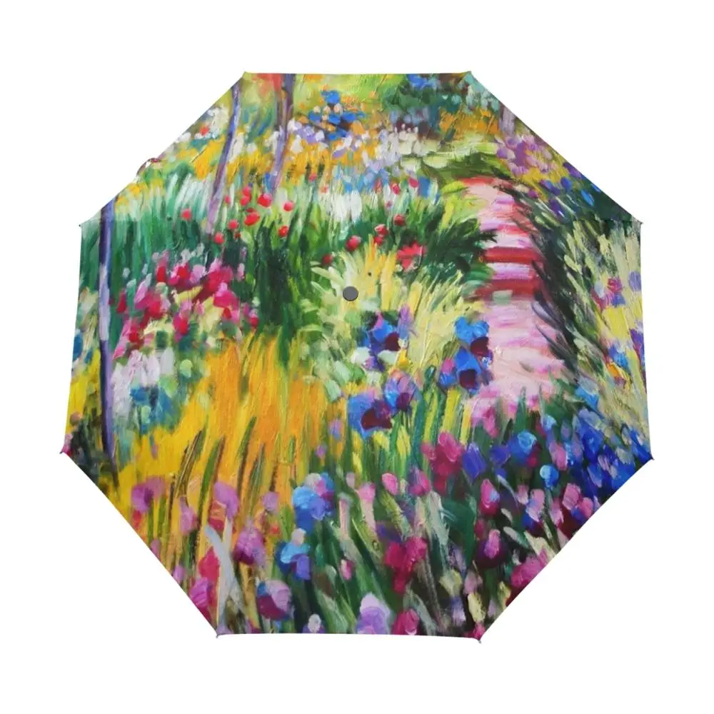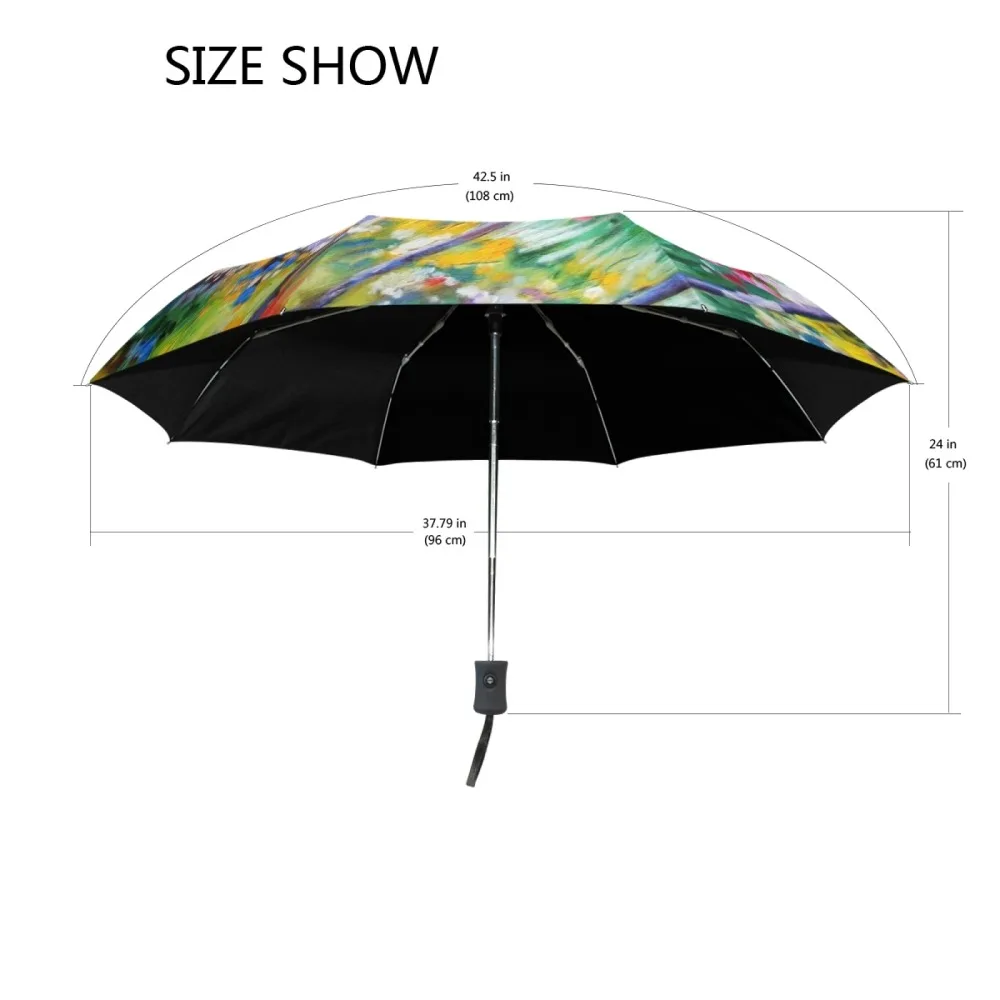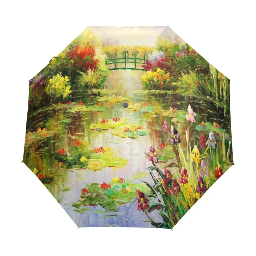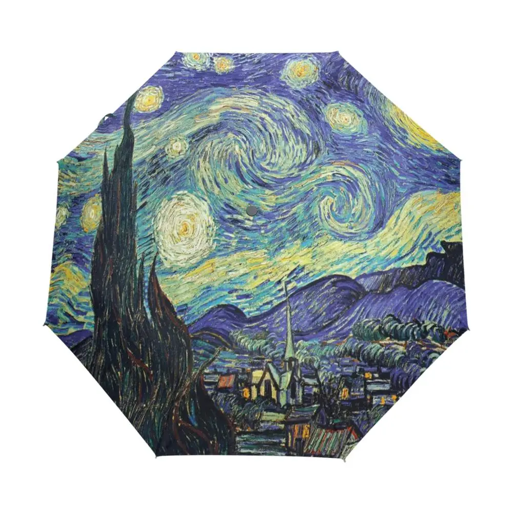 Знаменитые Зонты масляной живописи, женские Полностью автоматические зонты Monet, три складных зонта Ван Гога с защитой от УФ-лучей и черным покрытием