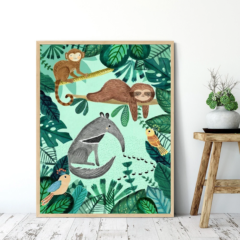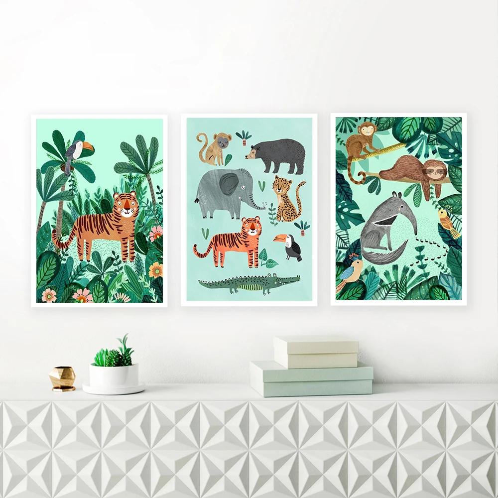 Тигр Панда Леопард попугай джунгли скандинавские плакаты и принты настенная живопись холст настенные картины для гостиной домашний декор