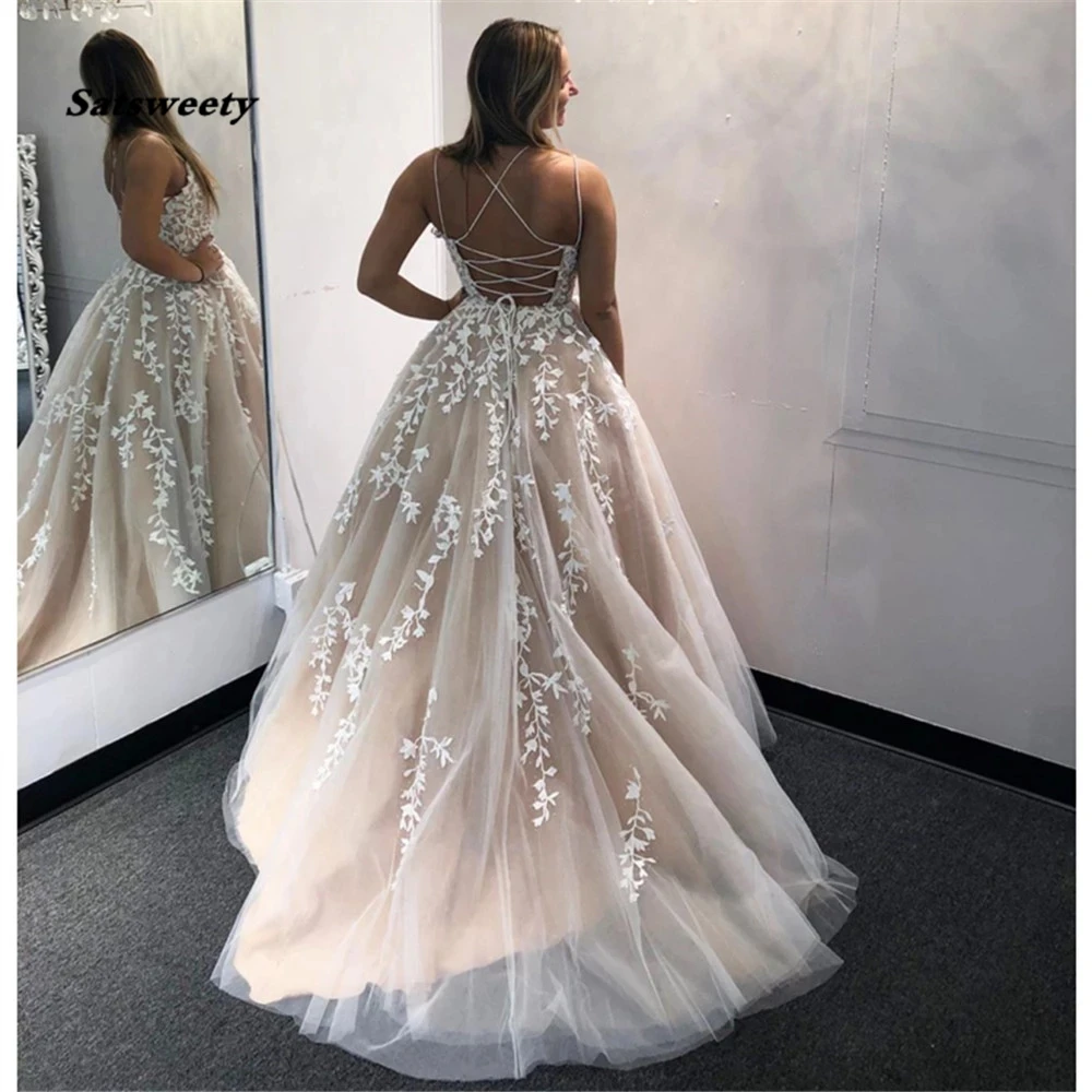 Потрясающие Выпускные платья Satsweety 2022, платье на двойных бретельках без рукавов, праздничное платье jurken, кружевной корсет с аппликацией на спине для выпускного вечера