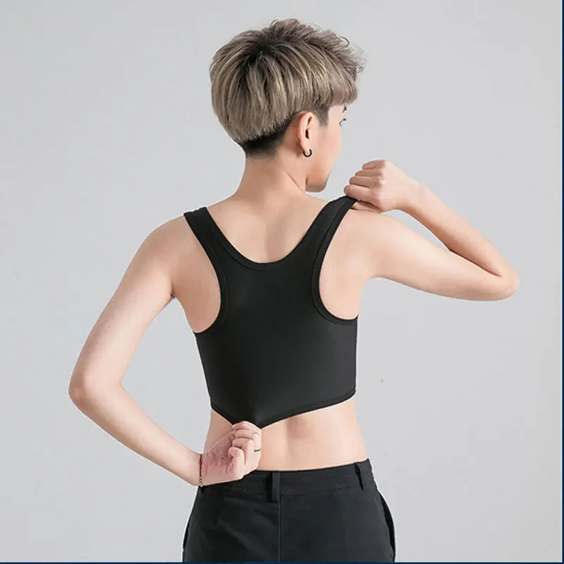 Кроп-топ DeRuiLaDy Женский, повседневная спортивная одежда, дышащая эластичная майка для груди, с пряжкой, черный цвет