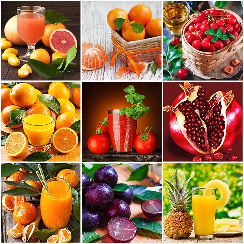 5D «сделай сам» алмазная живопись фрукты апельсины полная круглая квадратная вышивка пейзаж Алмазная вышивка мозаика стразы украшение для дома