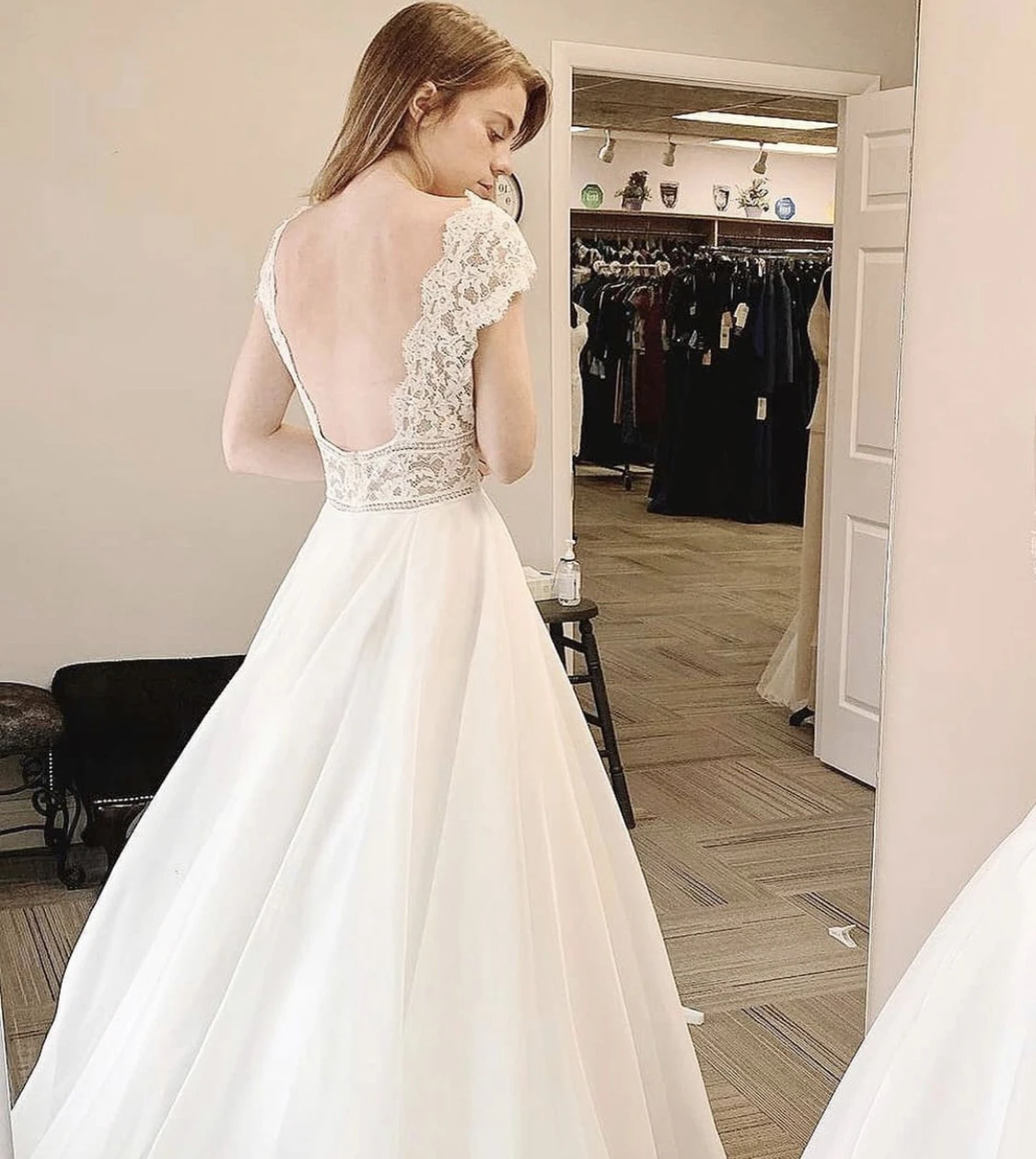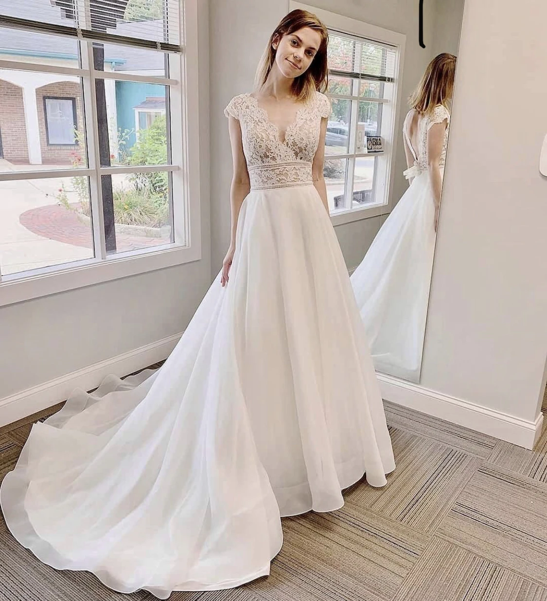 Женское свадебное платье с открытой спиной, элегантное кружевное платье из органзы с V-образным вырезом и рукавами-крылышками, платье невесты в стиле бохо со шлейфом, 2021