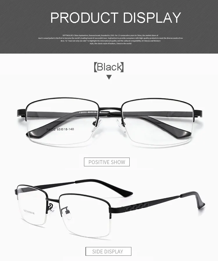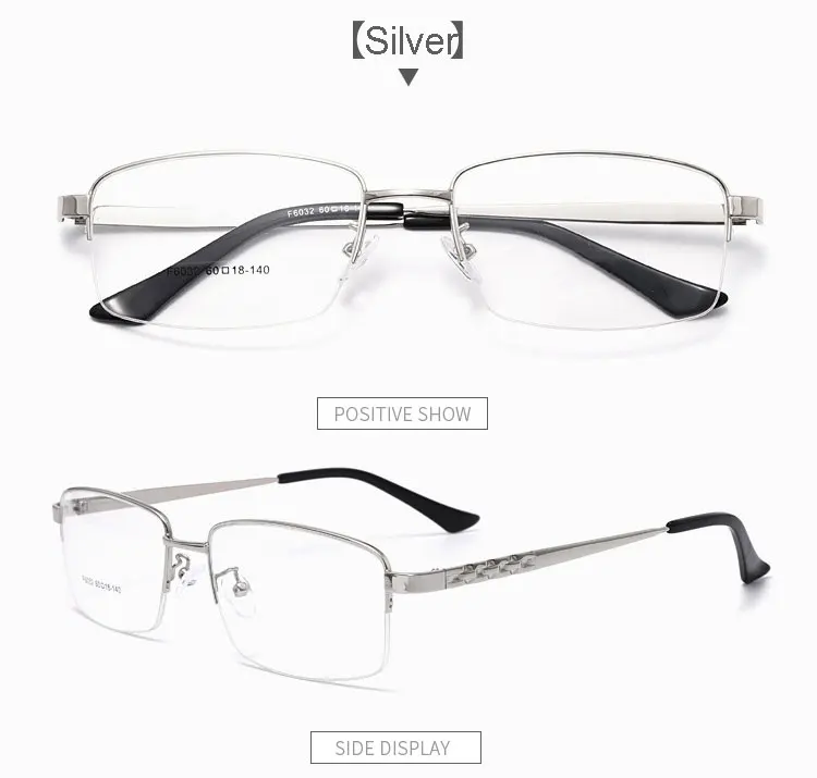 Очки мужские Полуободковые в деловом стиле, большая оправа из сплава, с пружинными петлями, при близорукости