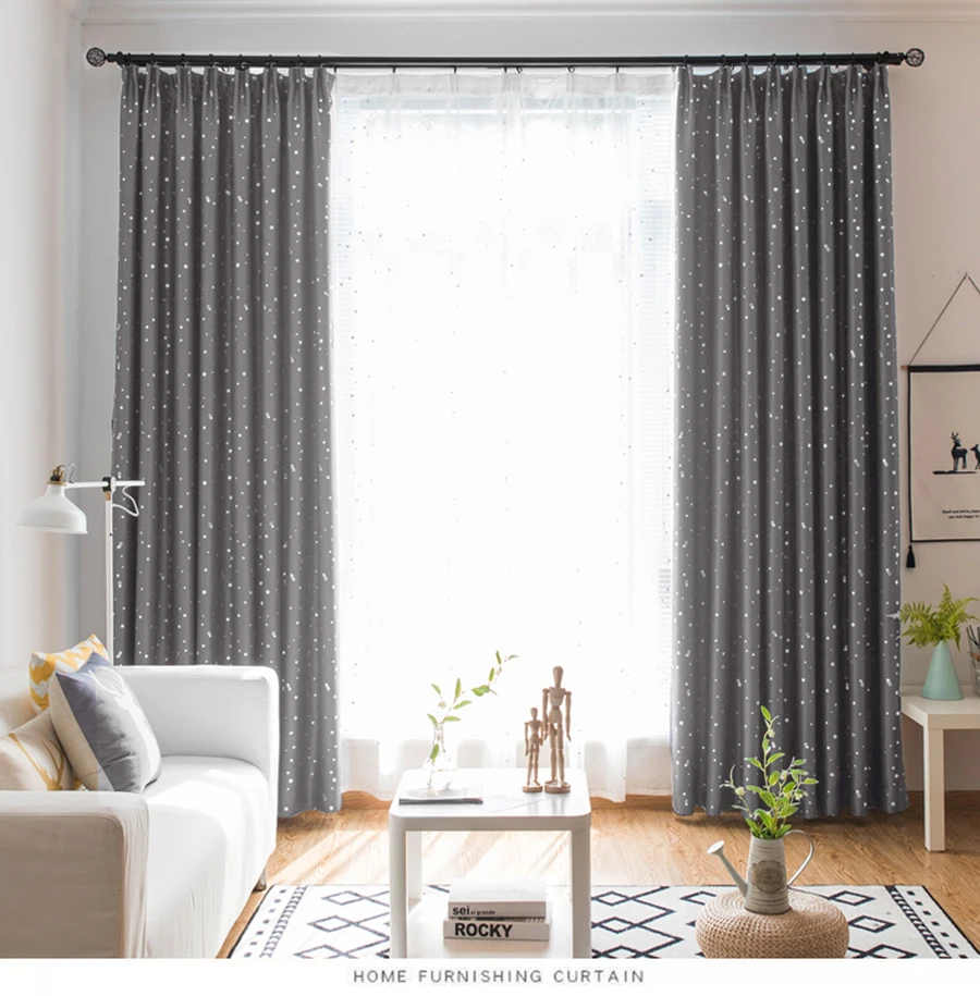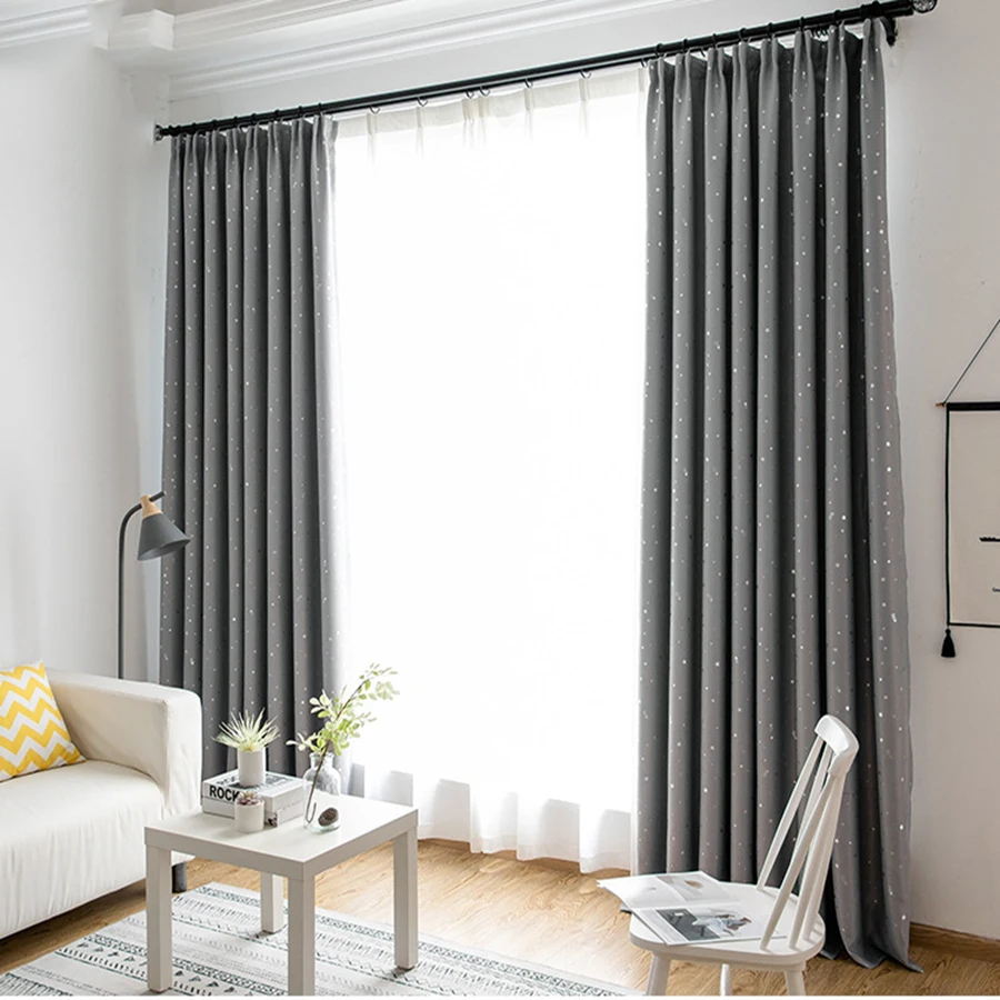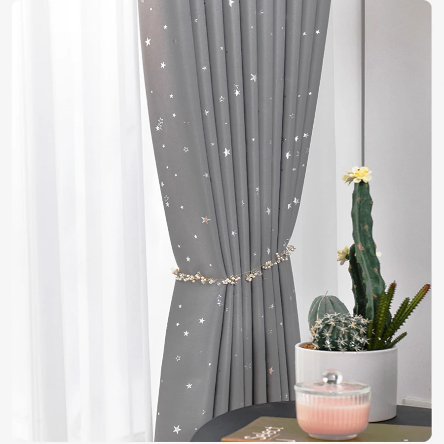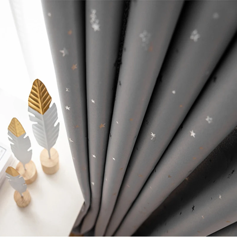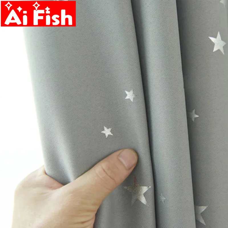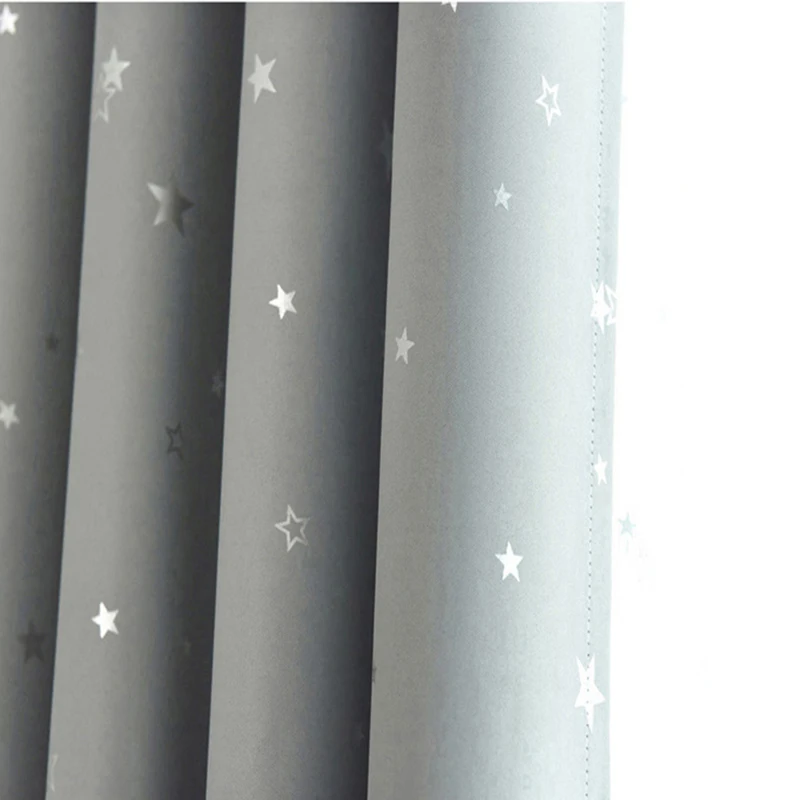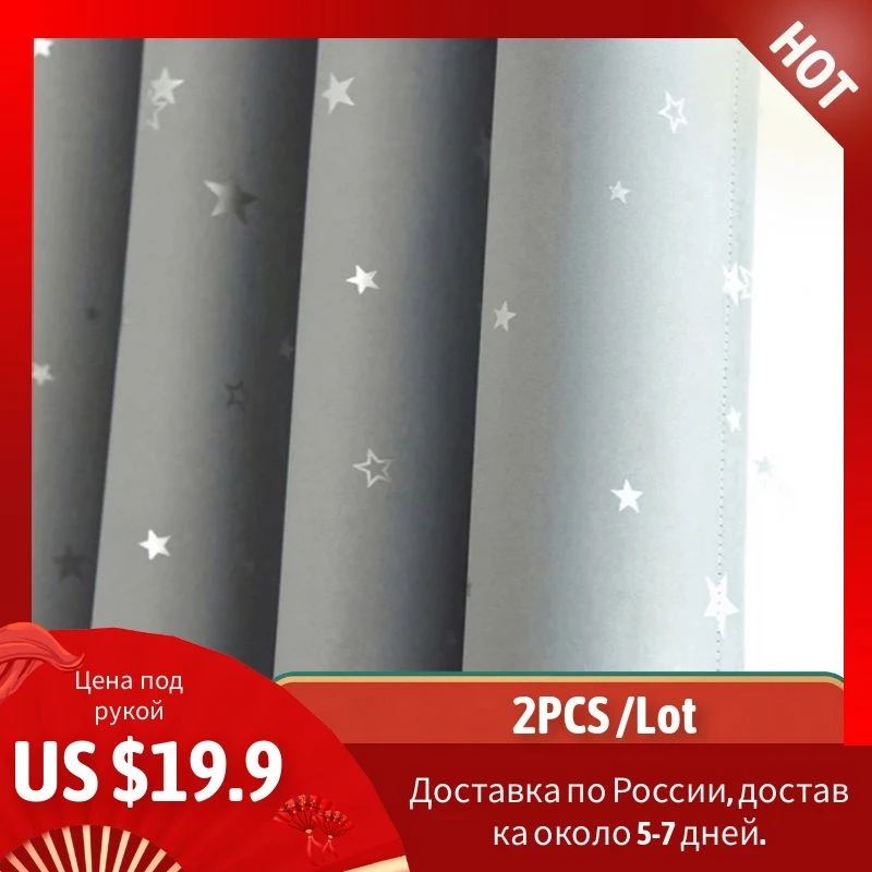 2 шт.лот, серые шторы с блестящими звездами для детской спальни, полузатемняющие шторы, занавески, местная доставка по России #2